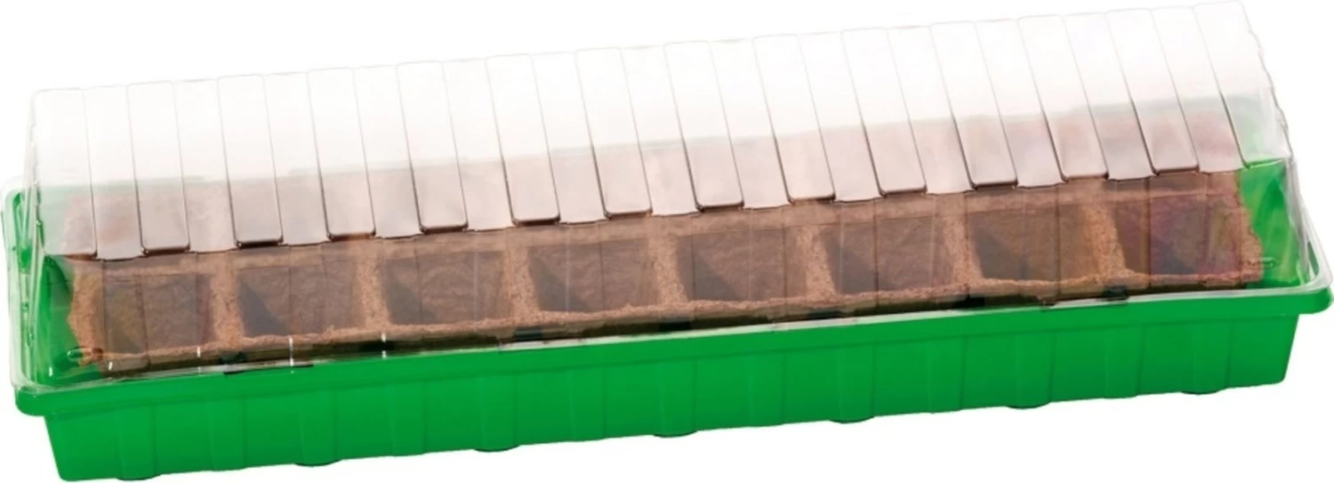 1 Schale, 1 Deckel, 16 Anzuchttöpfe á 6 x 6 cm