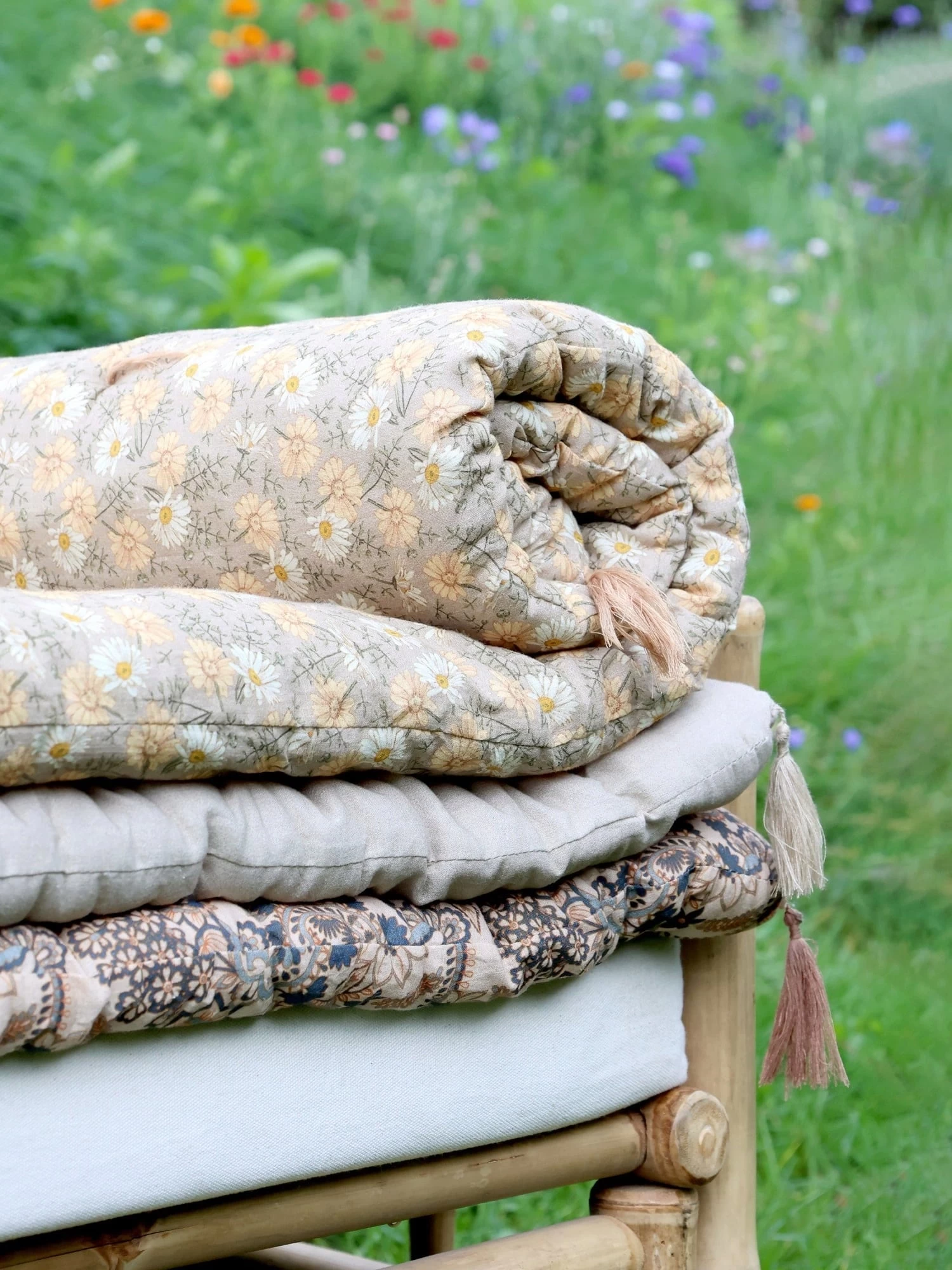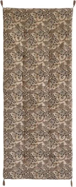 Diese anschmiegsame Auflage schenkt deinen Gartenmöbeln genau das richtige Maß an Komfort. Natürlich kannst du die Auflage auch als gemütliche Bodenmatratze verwenden, um geerdet deinen Meditationsübungen nachzugehen. Wird sie nicht mehr benötigt, kannst du sie ganz einfach aufrollen und platzsparend verstauen. Mit ihrem weichen Oberstoff aus Baumwolle sowie den Quasten an jeder Ecke schenkt sie deinem Außenbereich eine nostalgische Note und verleiht jedem Untergrund einen hohen Kuschelfaktor.