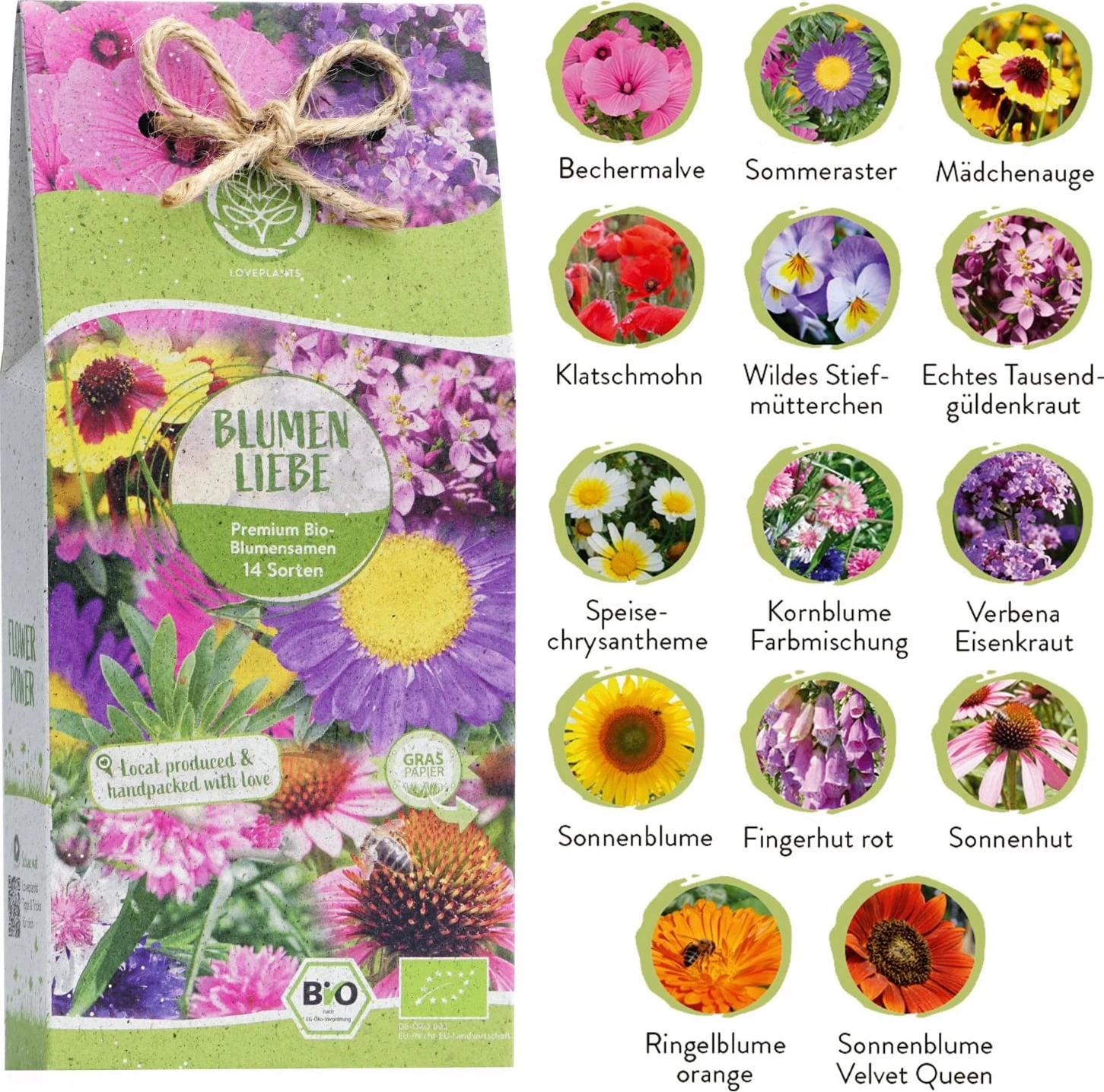 - Mit 14 verschiedenen Wild- und Balkonblumensorten