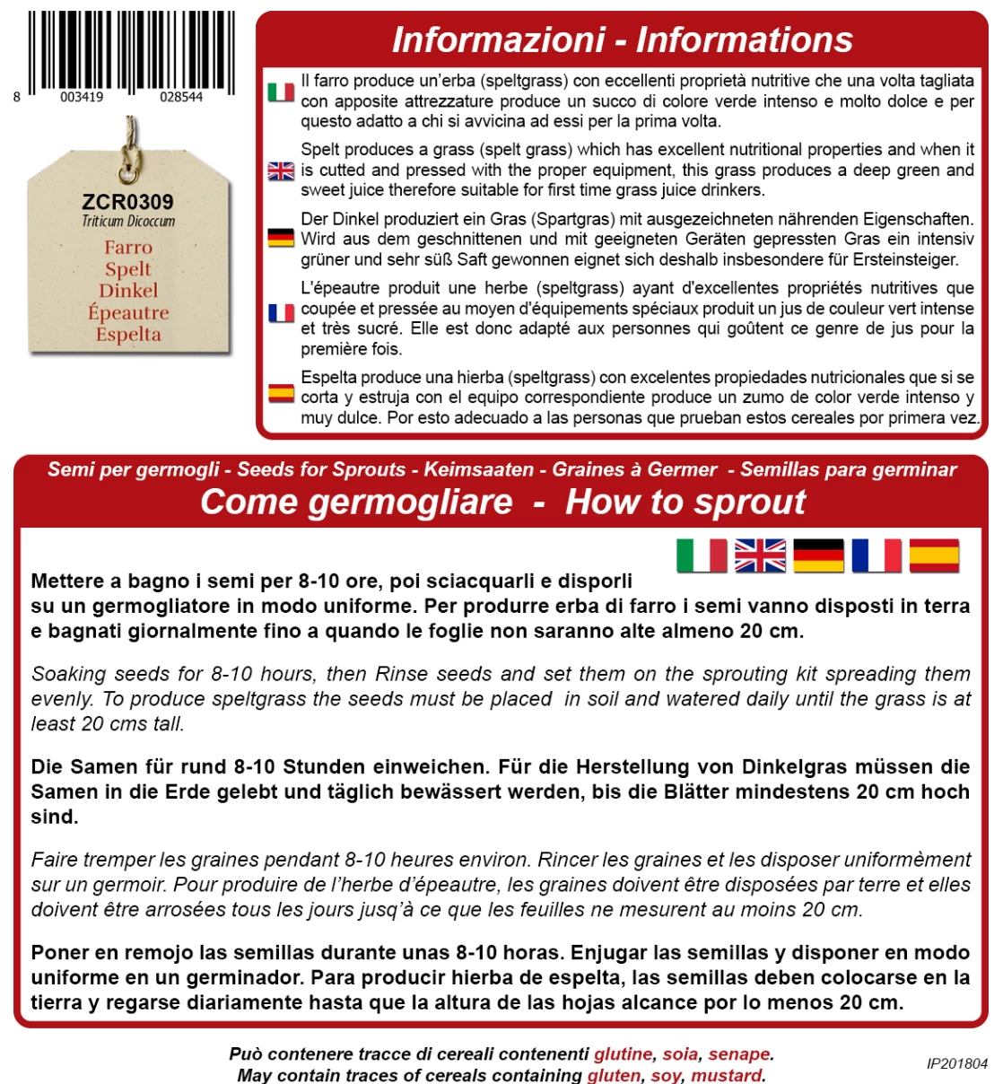 Dinkel gehört zu den Ă€ltesten Getreidearten. Bei der Anzucht wartet man so lange, bis das Dinkelgras ungefĂ€hr 20 cm hoch wird, danach kann man es zur Herstellung von Saft verwenden. Mit seinem grĂŒnen und wunderbar sĂŒĂen Geschmack eignet sich dieser vor allem fĂŒr Einsteiger.