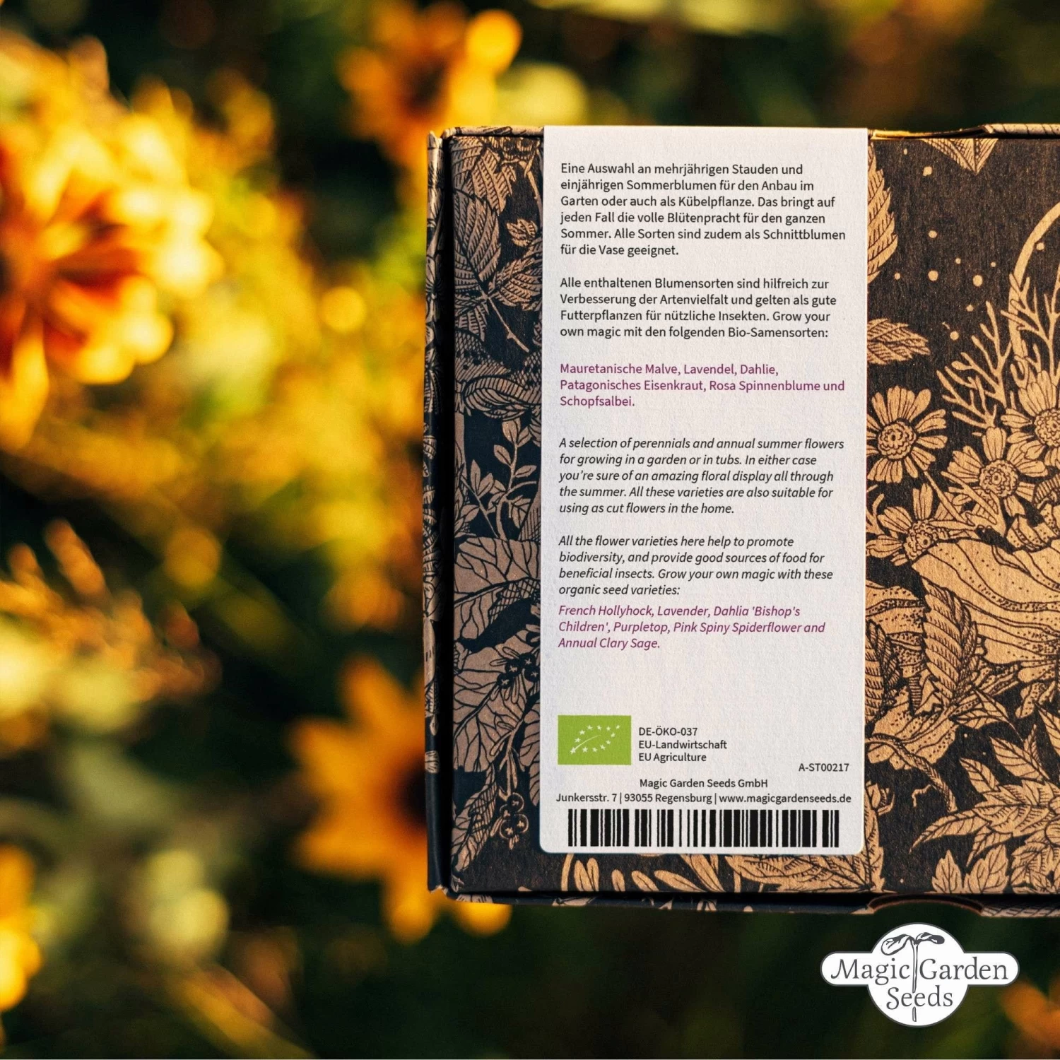 In dieser malerischen Geschenkverpackung befinden sich sechs wunderbare Stauden- und Sommerblumen, die sich wunderbar in bestehende Beete einfügen oder sich ideal für eine Neuanlage eignen. Darüber hinaus lassen sich die verschiedenen Arten auch in Blumentöpfen kultivieren und verschönern Balkone und Terrassen mit ihrer bezaubernden Pracht. Alle enthaltenen Blumen bieten reichlich Nektar und werden daher regelmäßig von Bienen, Hummeln und Schmetterlingen besucht.