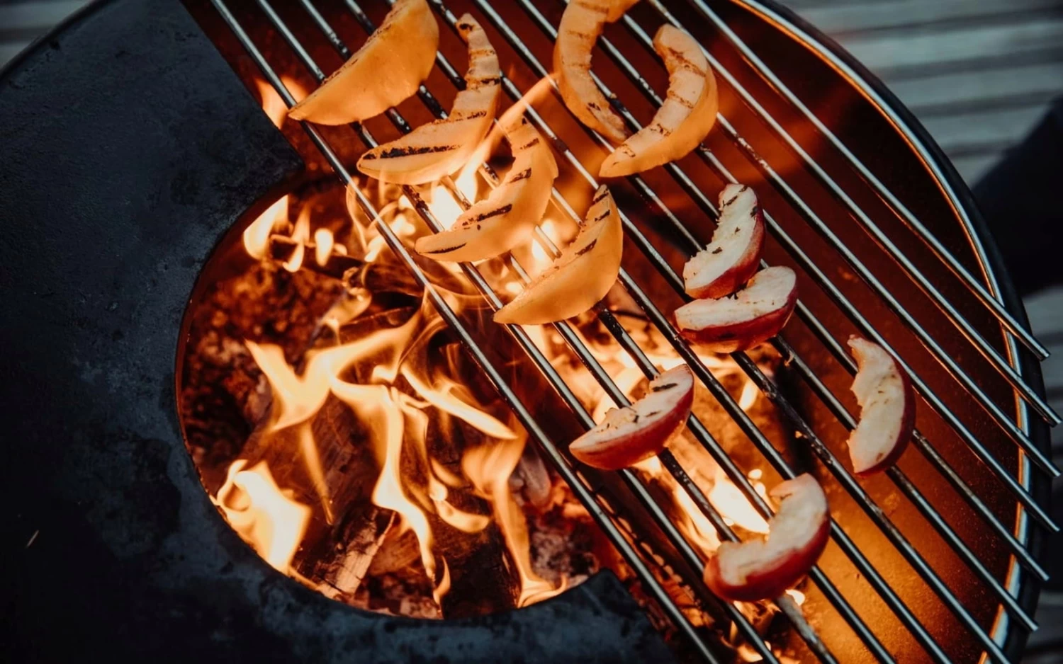 - Mit einem zweiten Grillrost komplette Feuerschale bedecken oder auf der anderen Hälfte Plancha-Platte benutzen (nicht enthalten)