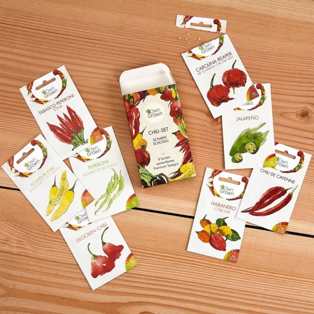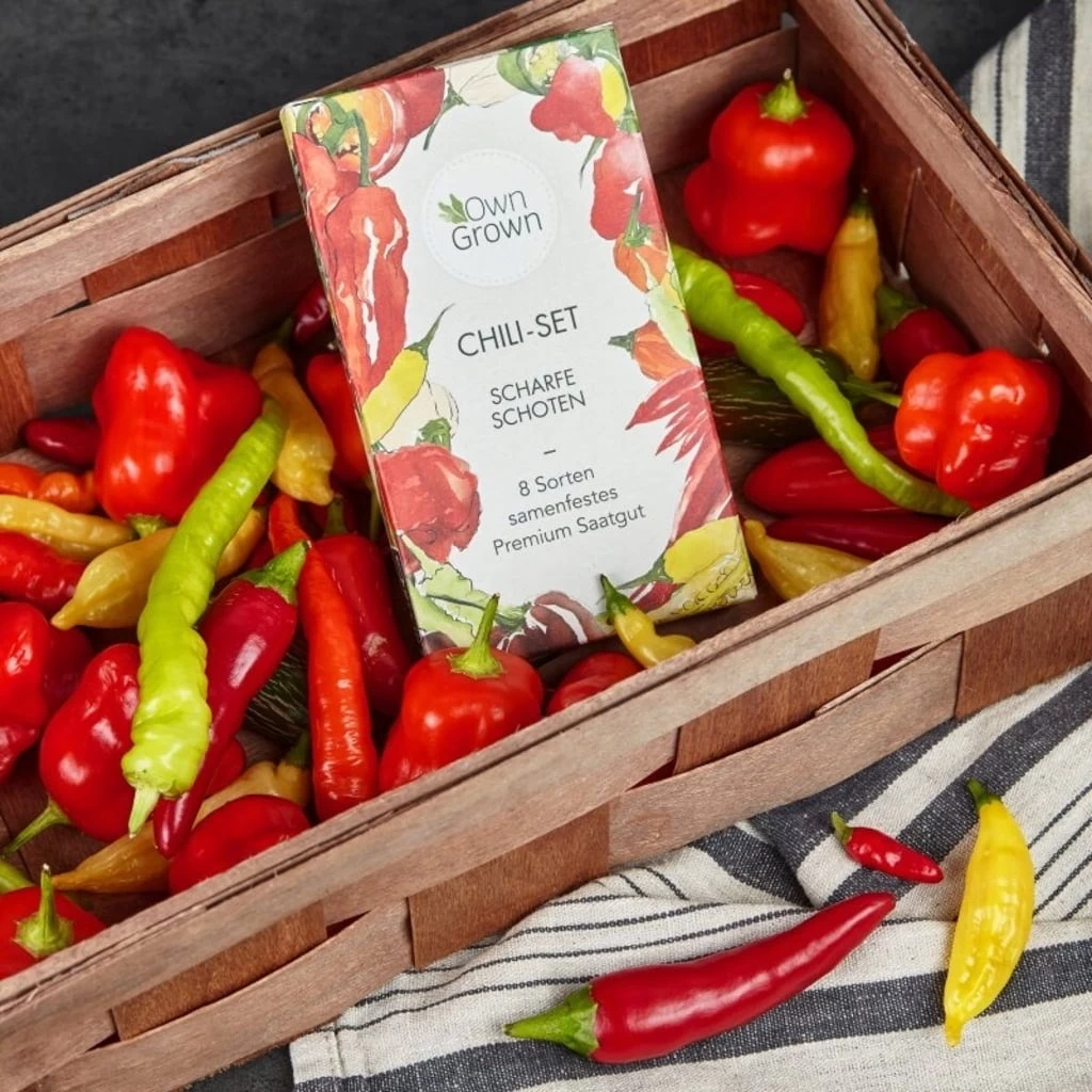 Mit diesem Set kommen die Geschmacksnerven ganz schön in Wallung, denn in der schönen Geschenkverpackung befinden sich 8 scharfe Chilisorten, die nur darauf warten, einen Brandalarm auszulösen. Auf der Rückseite jeder Tüte findest du Tipps für die Aussaat, Ernte und vieles mehr. Je nach Sorte ist die Anzucht im Freiland oder Pflanzkübel möglich.