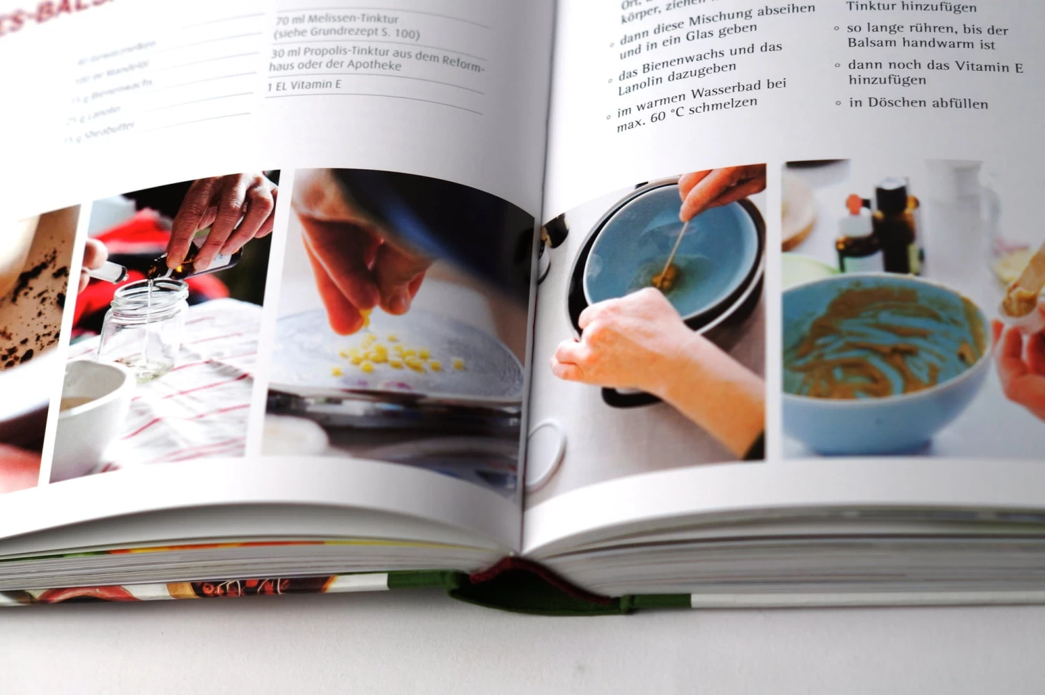 - In vier Bereiche gegliedert: Hausapotheke, Körperpflege und Kosmetik, Küche, Haus und Garten