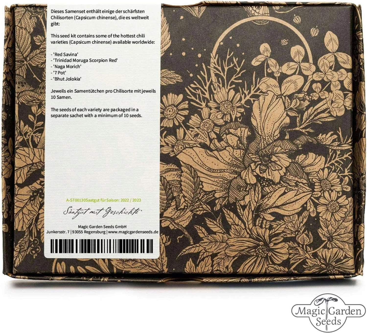 Wem es gar nicht scharf genug sein kann, der wird in diesem Set seinen Meister finden. In der Packung versammeln sich einige der schärfsten Chilisorten, die man auf der Erde finden kann. Eine echte Herausforderung, die reichlich Mut bedarf.