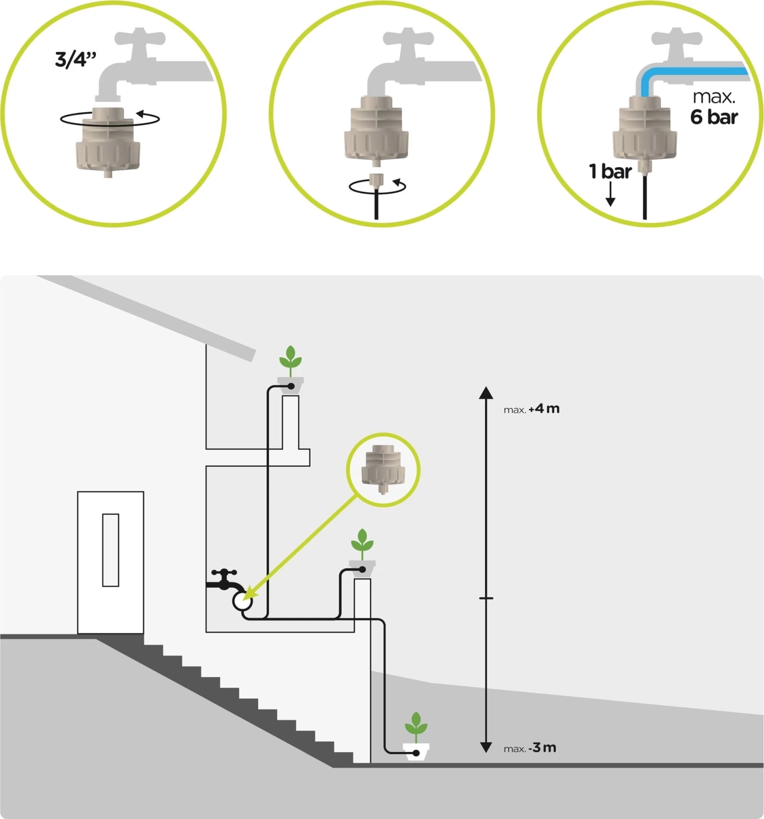 Anschlussfertig fĂĽr Wasserhahn. Anschlussverschraubung fĂĽr 8-mm-Zufuhrschlauch.