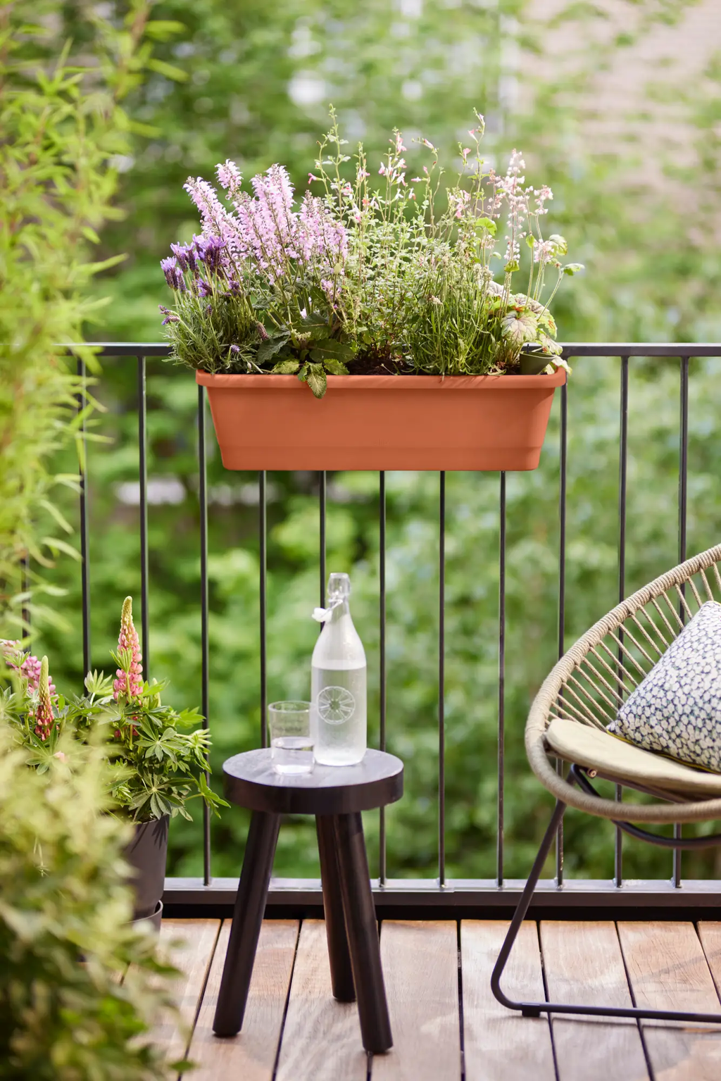 Mit dem Balkonkasten Noa bist du ganzjährig bestens gerüstet. Das robuste Material ist absolut wetterfest und kann daher auch im Winter draußen bleiben. Aber auch in den Sommermonaten kann Noa überzeugen, denn im Boden versteckt sich ein großes Wasserreservoir, welches deine Pflanzen vor dem Verdursten bewahrt. Selbst wenn du mal aufs Gießen vergisst, sind deine Schützlinge stets gut versorgt.