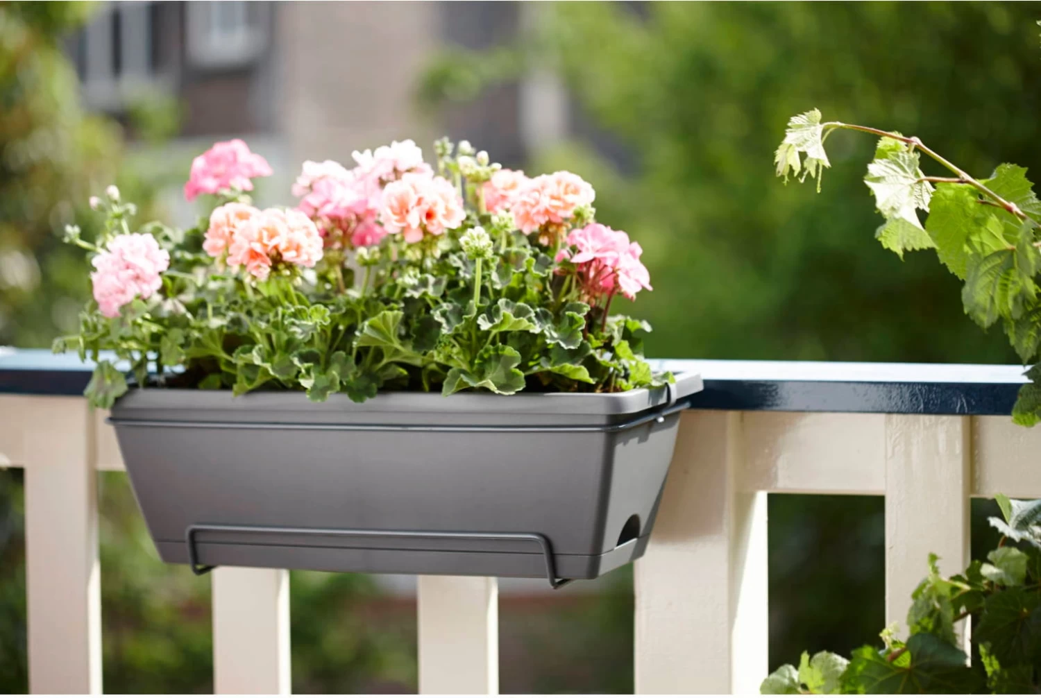 Mit dem praktischen barcelona Balkonkasten all-in-1 Set verwandelst du deinen Balkon im Handumdrehen in eine grüne Oase. Wenig Aufwand und großer Effekt: Das Produkt kann ganz einfach an das Balkongeländer gehängt werden. Der im Set enthaltene Untersetzer speichert überschüssiges Regen- und Gießwasser und versorgt deine Pflanzen bei Bedarf mit diesem. Da macht es auch nichts, wenn du einmal zu gießen vergisst.