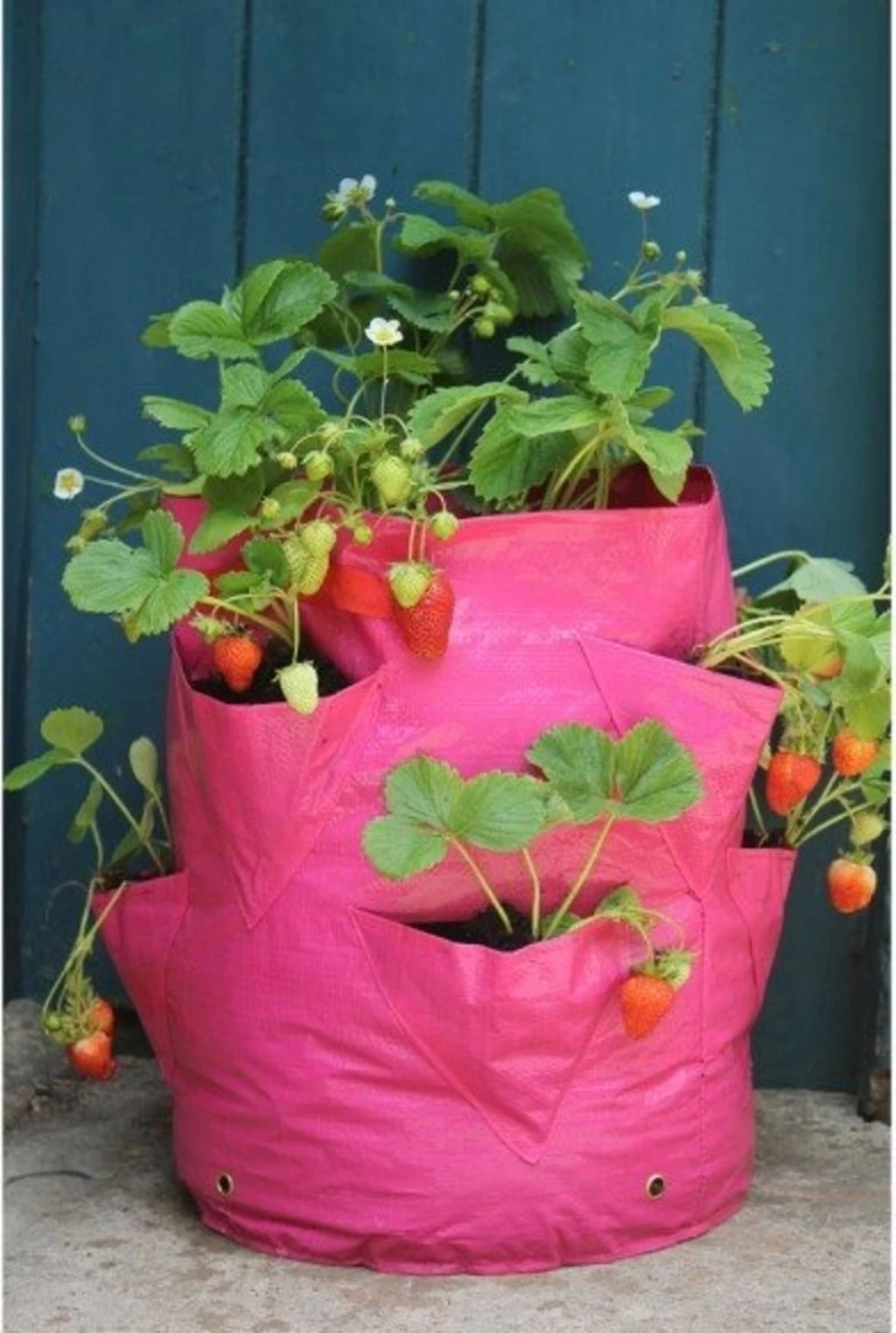Wenn Sie wenig Platz zur Verfügung haben aber trotzdem gerne frische Erdbeeren oder Kräuter ernten möchten, sind diese Kräuterpflanztaschen genau das Richtige für Sie. Jede Pflanztasche hat Platz für 8 Erdbeer- oder Kräuterpflanzen und besteht aus robustem Polyethylen. Die seitlichen Tragegriffe machen das hin und her bewegen außerdem zum Kinderspiel.