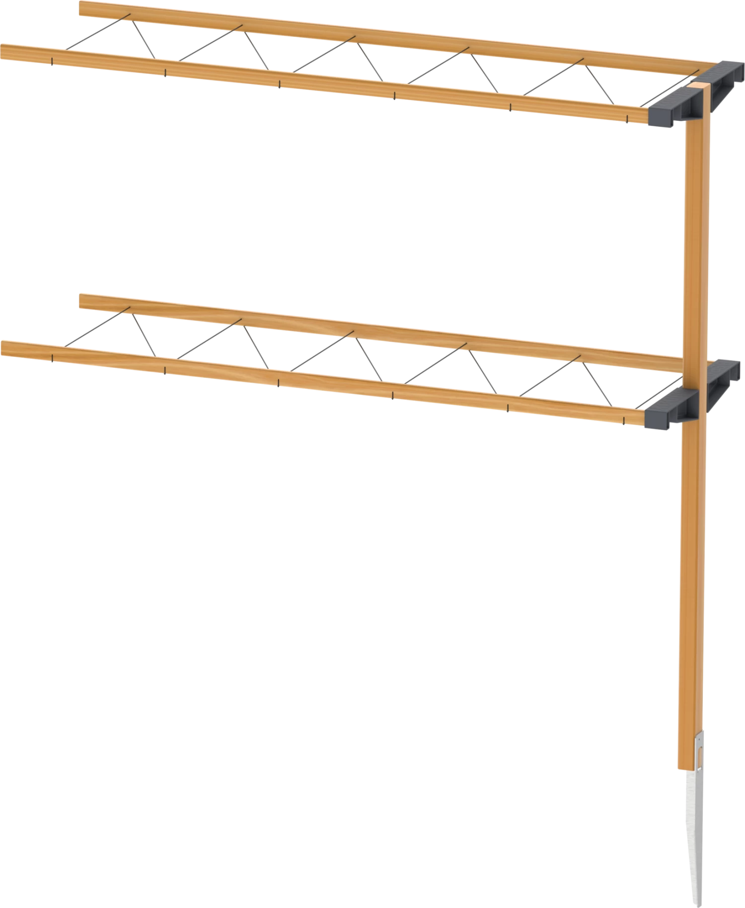 - Lieferumfang: 5 Holzstreben, 2 Halterungen, 1 Einschlaghülse, 11 Schrauben, 4 m Schnur