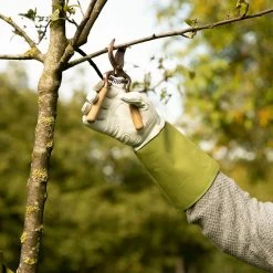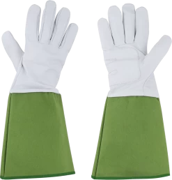 Mit den Gartenhandschuhen aus robustem Leder und Segeltuch haben selbst Dornen schlechte Karten. Der lange Schaft schützt nicht nur Hände, sondern auch Unterarme, wodurch sich die Handschuhe bestens für schwere Gartenarbeiten eignen.