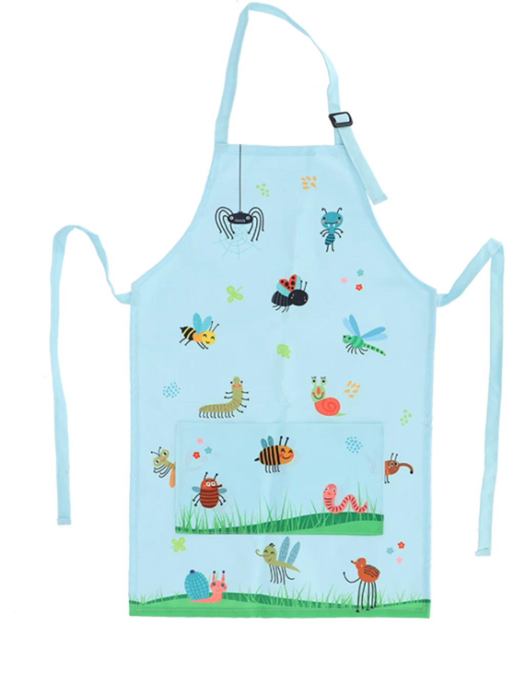 Diese süße Schürze im Insekten-Design schützt die Kleidung kleiner Entdecker:innen und Gärtner:innen vor Verschmutzungen und sollte daher bei der Gartenarbeit nicht fehlen.