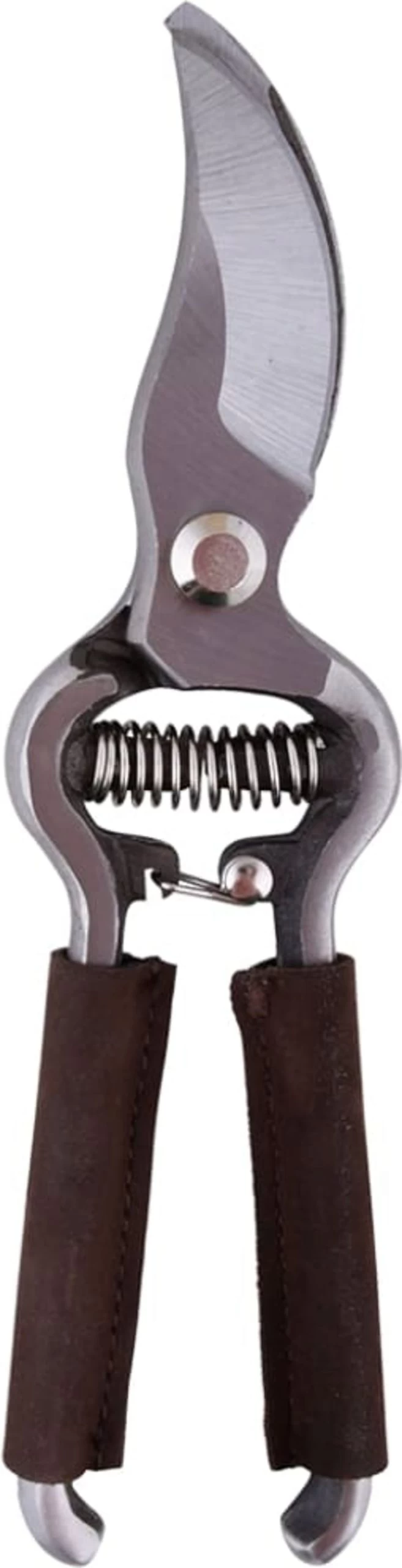 Mit der Obst- & Blumenschere lassen sich mühelos Zweige und Äste von Sträuchern und Obstbäumen stutzen. Auch die Stängel von Blumen bekommen mit der Schere einen sauberen Schnitt und sind somit bereit für die Vase. Der Ledergriff schont dabei die Haut der Handinnenflächen und bietet den nötigen Grip. Ist die Arbeit getan, kann die Schere geschlossen und sicher verstaut werden.