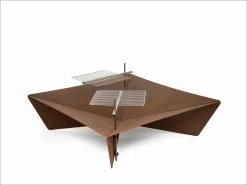 Sie wurde aus 3 mm dickem, wetterfestem Stahl gefertigt und kann somit das ganze Jahr über draußen stehen bleiben, denn durch die Witterungseinflüsse entsteht eine einzigartige Rostoptik auf der anfangs stahlgrauen Oberfläche, welche die Feuerschale immer attraktiver werden lässt. Hier vereinen sich Design und Funktionalität auf höchster Ebene.