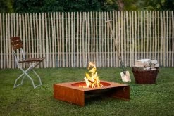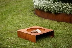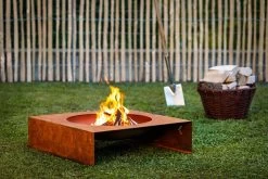 Die Feuerstelle „light-my-fire“ bietet ein spannendes Zusammenspiel der gegensätzlichen geometrischen Formen Kreis und Quadrat. Sie wurde aus 3 mm dicken wetterfesten Stahl gefertigt, somit kann sie das ganze Jahr ĂĽber drauĂźen stehen bleiben.