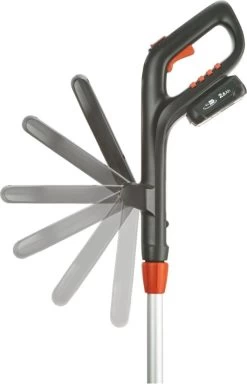 - Das Trimmen an schwer zugänglichen Bereichen wird durch den abwinkelbaren Stiel erleichtert