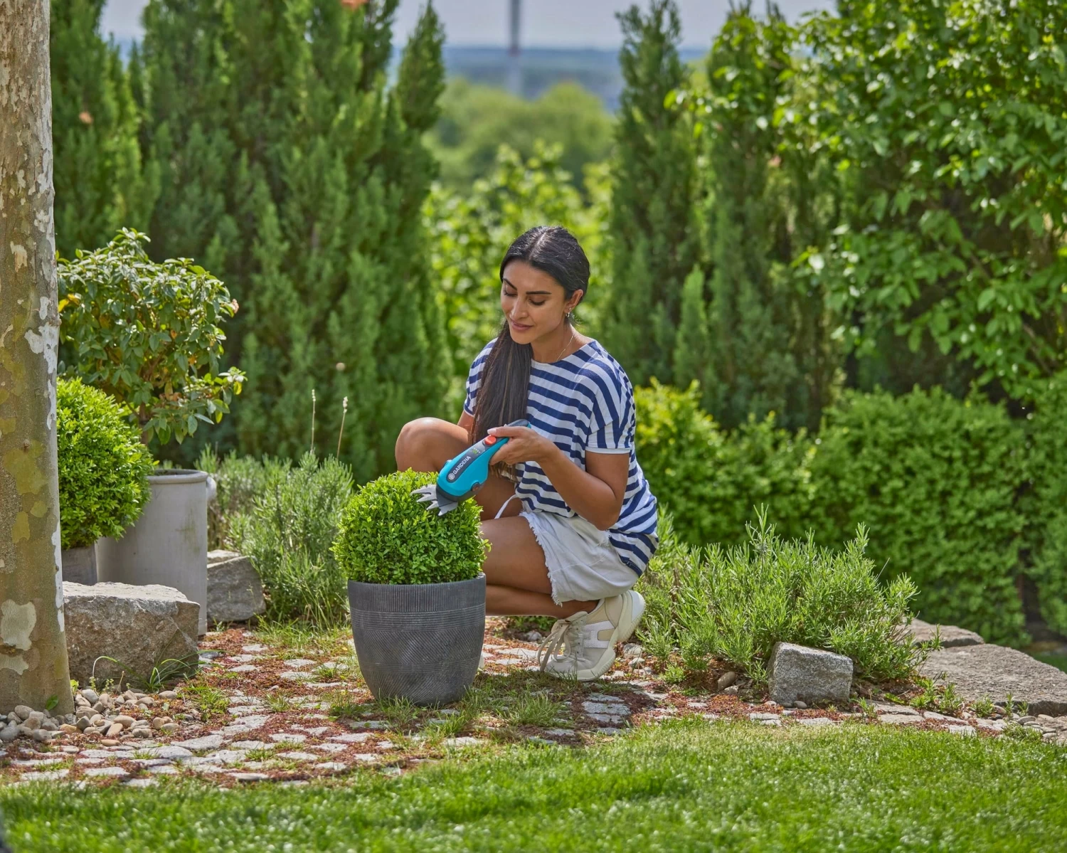 Die Akku-Grasschere ClassicCut Li sorgt für gepflegte Rasenkanten und perfekt geschnittene Kleinsträucher, wie Buchsbaum und Co. Die präzisionsgeschliffene und antihaftbeschichtete Klinge garantiert eine lang anhaltende Schärfe und ermöglicht einen sauberen und präzisen Schnitt.