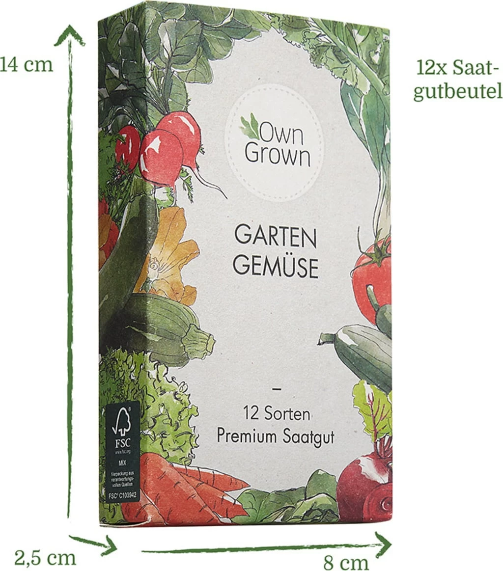 Mit diesem Set kommen Gemüsetiger voll auf ihre Kosten, denn in der schönen Geschenkverpackung befinden sich 12 leckere Gemüsesorten, die nur darauf warten, ausgesät zu werden. Auf der Rückseite jeder Tüte findest du Tipps für die Aussaat, Ernte und vieles mehr. Je nach Sorte ist die Anzucht am Balkon, im Freiland oder Gewächshaus möglich.