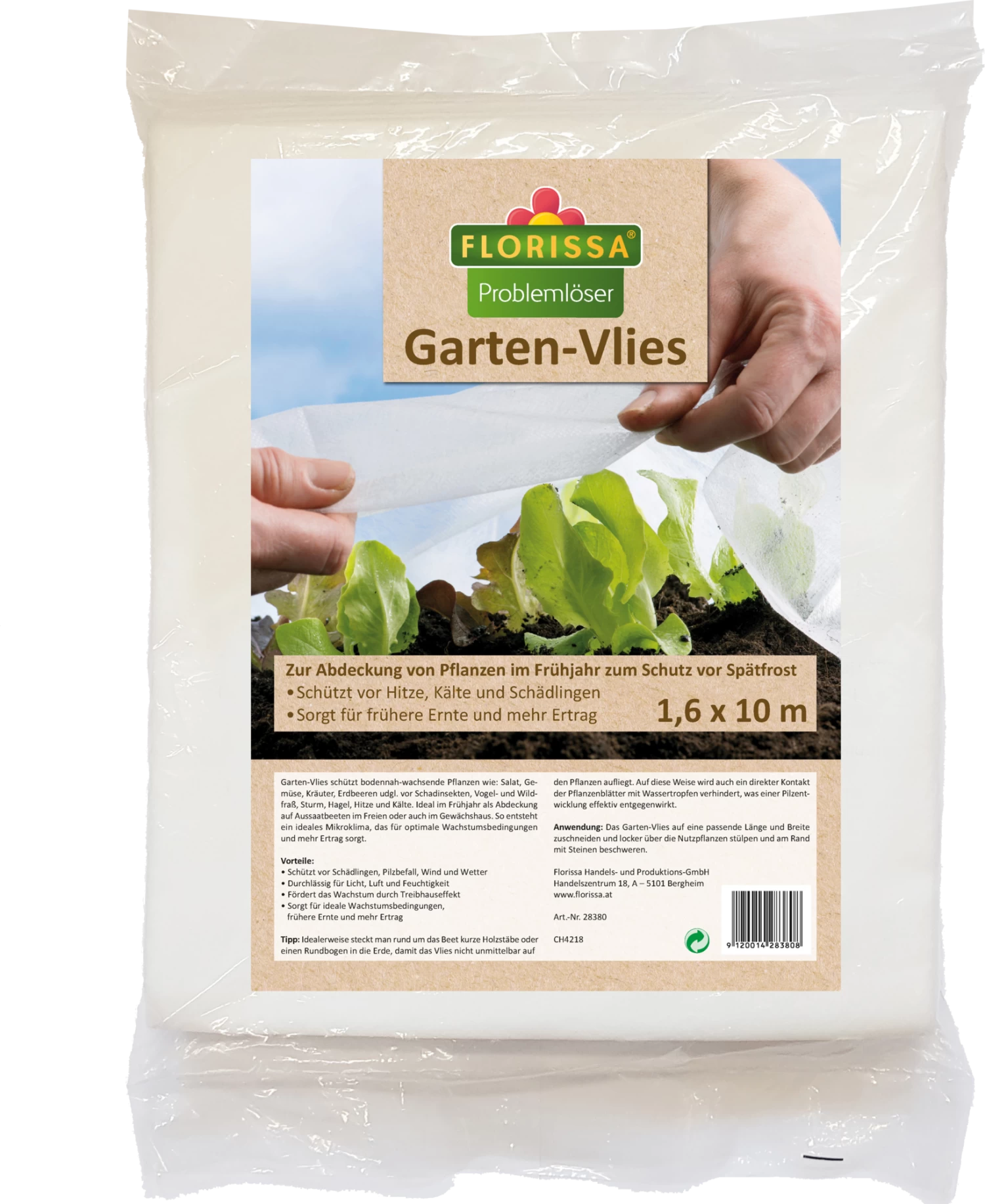 Dieses Garten-Vlies schĂŒtzt in BodennĂ€he wachsende Pflanzen wie Salat und Erdbeeren nicht nur vor Hitze, KĂ€lte, Hagel und Sturm, sondern auch vor Vogel- und WildfraĂ sowie Schadinsekten. Im FrĂŒhjahr sorgt es als Abdeckung auf Aussaatbeeten sowie im GewĂ€chshaus fĂŒr ein ideales Mikroklima und somit hervorragende Wachstumsbedingungen. So kannst du mit diesem Vlies die optimalen Voraussetzungen fĂŒr eine reiche Ernte schaffen.