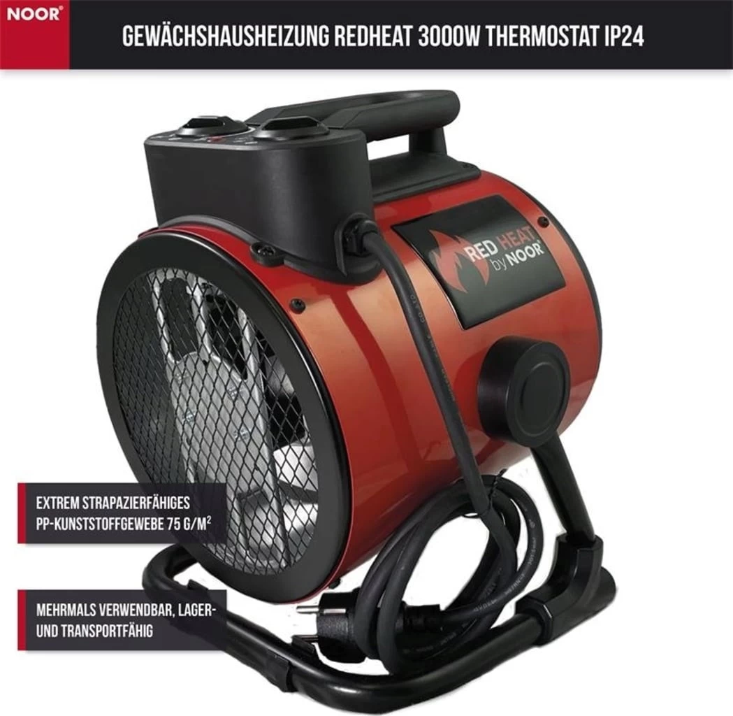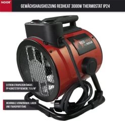 Die Gewächshausheizung „Redheat“ ist eine flexibel einsetzbare Möglichkeit, Gewächshäuser oder Ähnliches vor Frost zu schützen. Ein automatischer Temperaturwächter sorgt dafür, dass sich das Gerät automatisch einschaltet, falls die eingestellte Temperatur unterschritten wird.