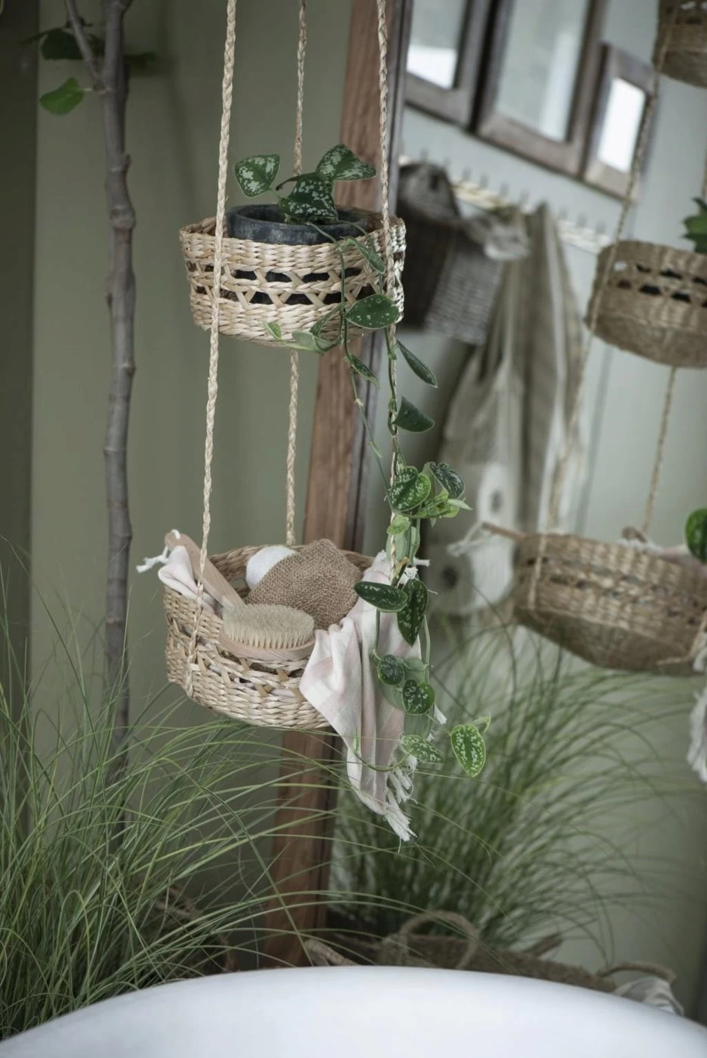 Diese drei miteinander verbundenen Hängekörbe eignen sich nicht nur hervorragend als ästhetische Aufbewahrungslösung für Badezimmer und Home Office, sondern auch als zauberhafte Pflanzgefäße. So kannst du deinen eigenen kleinen Hängegarten Wirklichkeit werden lassen und dein Zuhause auf einzigartige Weise begrünen.