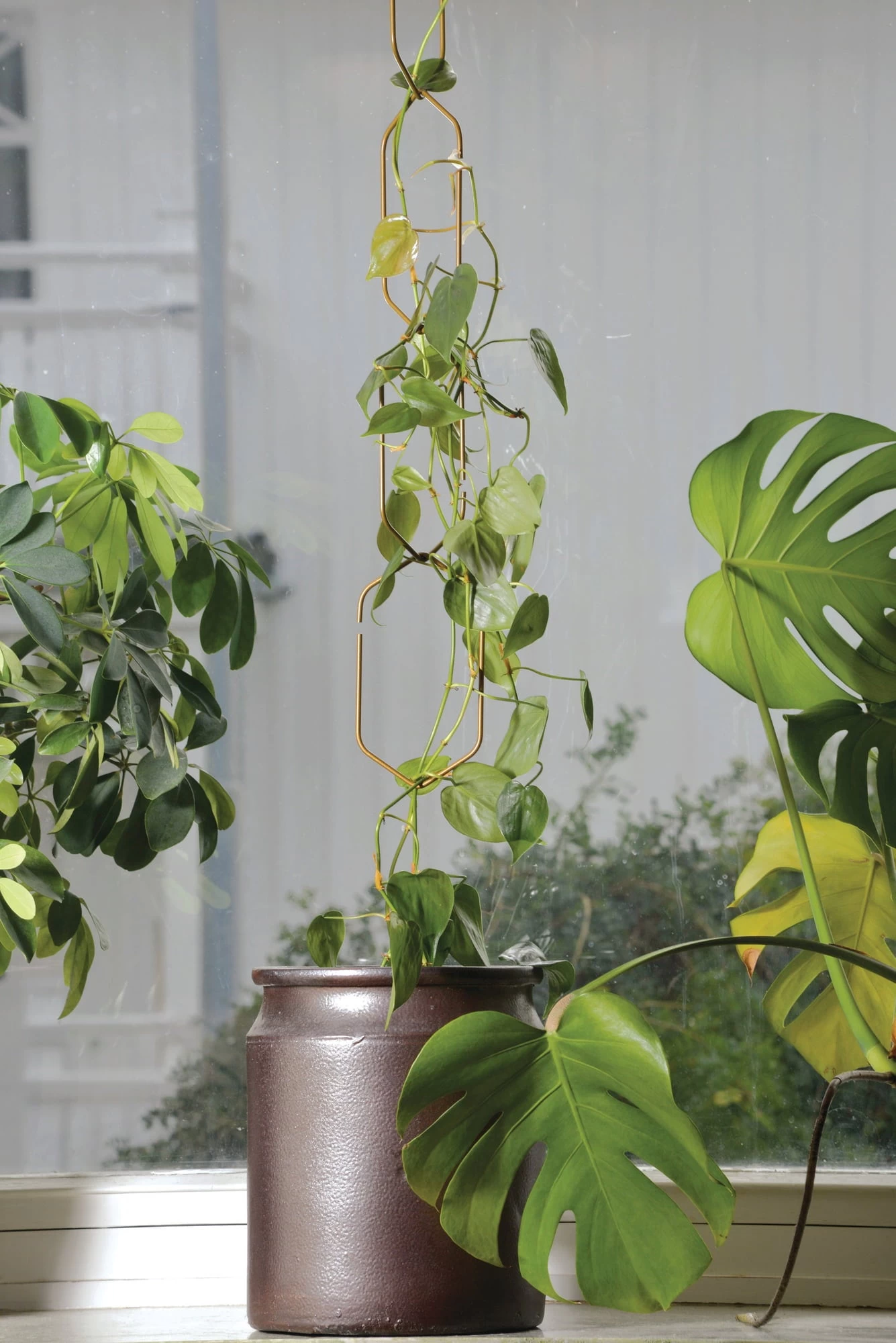 Die messingfarbene Kletterhilfe aus robustem Stahl eignet sich ideal für kletter- und schlingfreudige Pflanzen. Die sechs Glieder weisen eine sechseckige Form auf und lassen sich beliebig miteinander verketten. Befestigt werden kann die Kette beispielsweise an einer Gardinenstange oder einer anderen geeigneten Stelle im Zimmer. Ein einzigartiger Hingucker für stilbewusste Pflanzenfreunde.