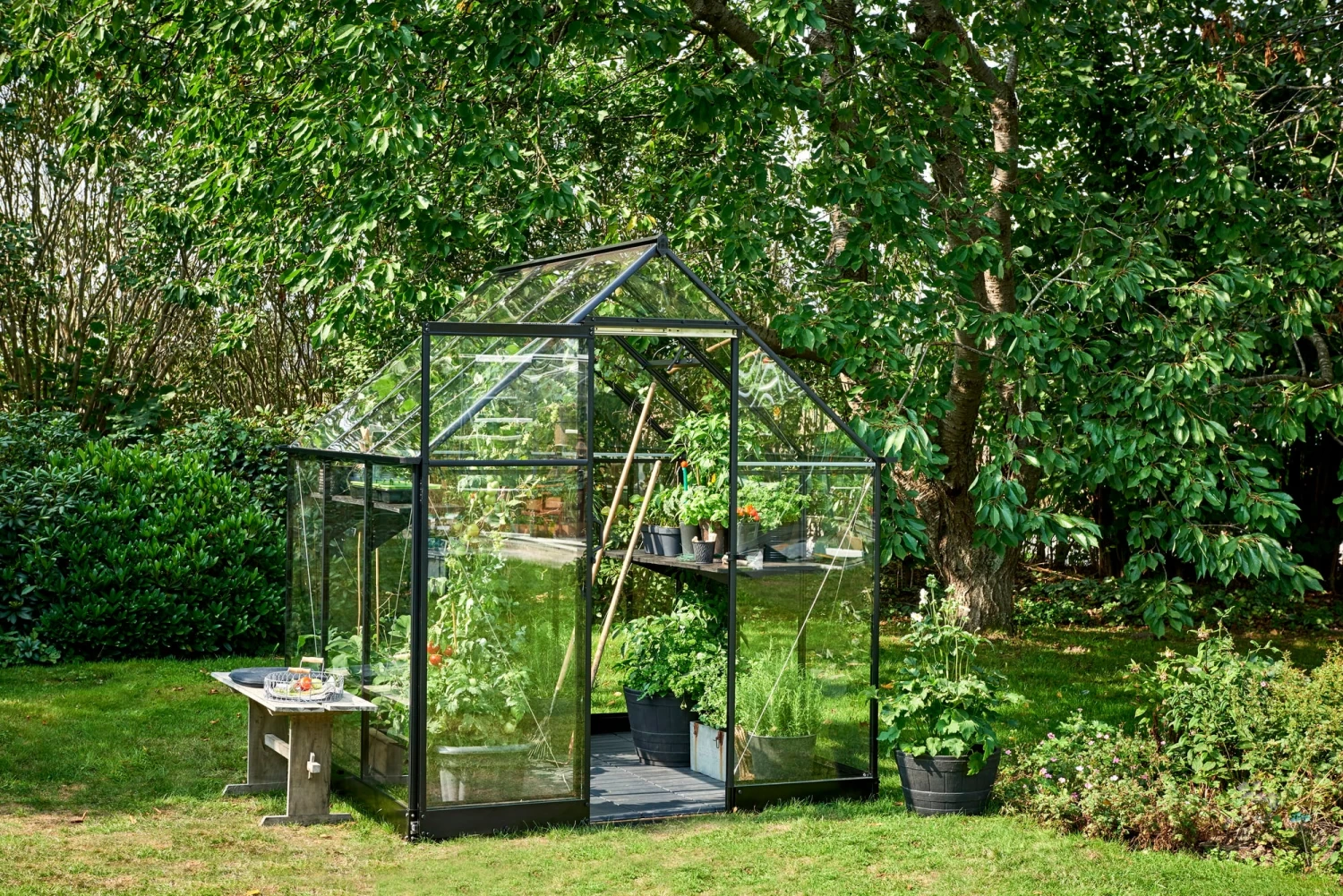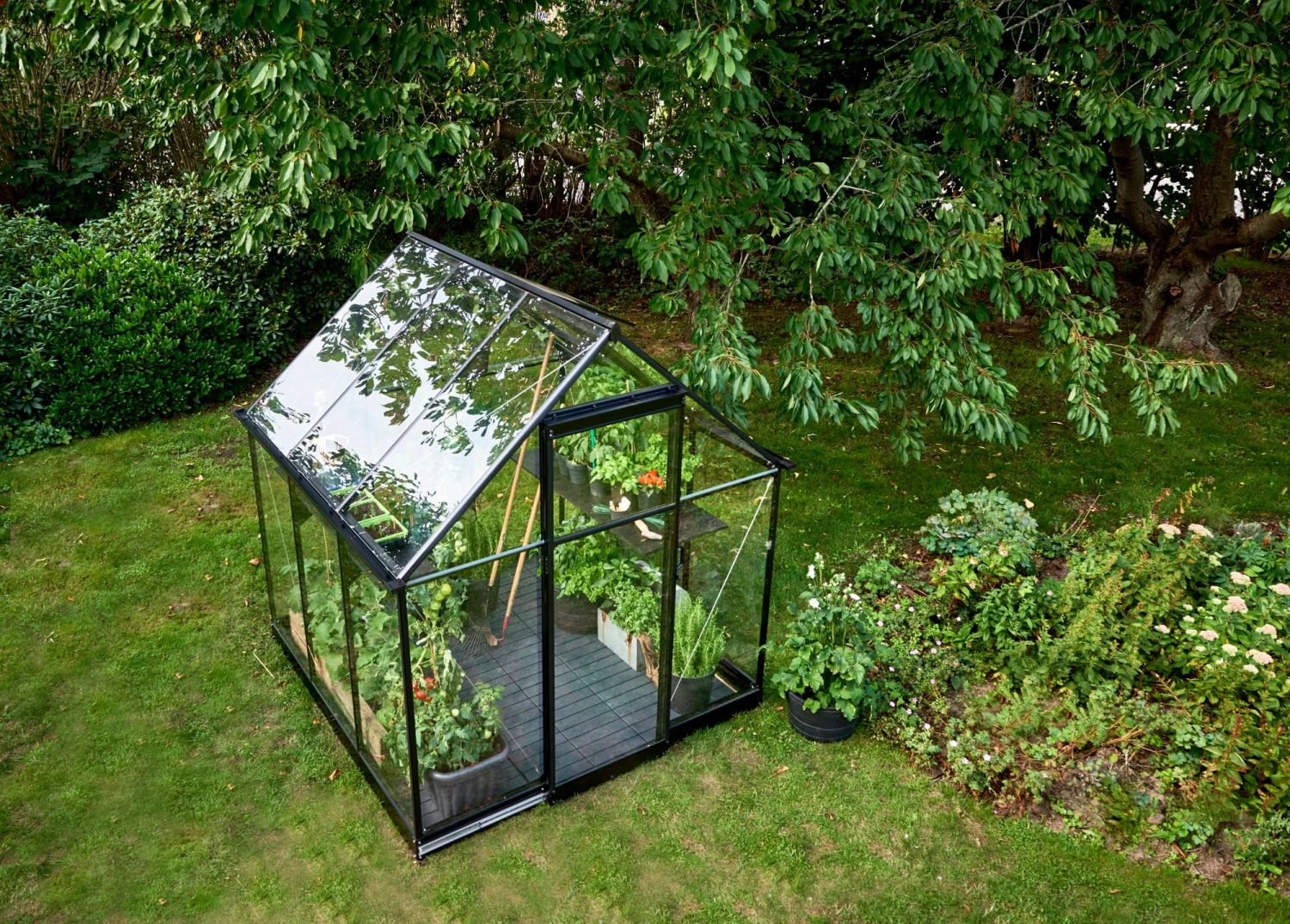 Der Wunsch nach einem eigenen Gewächshaus kann auch in kleinen Gärten erfüllt werden, denn das Gewächshaus „Qube“ ist in verschiedenen Größen erhältlich. Geräumigere Modelle bieten zudem Platz für eine kleine Sitzecke, sodass dein Gewächshaus gleichzeitig einen geschützten Aufenthalt im Freien ermöglicht.