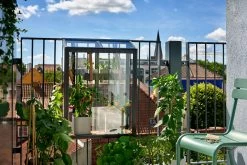 Befestigen lässt sich das Gewächshaus Urban sowohl am Balkongeländer als auch an der Wand. Zum Lüften kannst du das Dach mit der speziellen Vorrichtung unkompliziert nach oben kippen. Zum Pflegen und zum Entnehmen deiner Pflanzen lässt sich die Glaswand an der Vorderseite einfach zur Seite schieben.