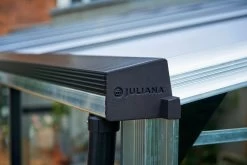 Für ein angenehmes Raumgefühl sorgen die großzügige Raumhöhe, die breite und barrierefreie Doppeltür sowie die zwei Fenster, die sich an den Seiten befinden. Durch diese wird nicht nur ein schneller Luftaustausch ermöglicht, sonder auch eine unkomplizierte Temperaturregelung unterstützt. Der robuste Alurahmen sowie die transparenten Sicherheitsgläser runden das hochwertige Erscheinungsbild des Gewächshauses Veranda harmonisch ab und machen es zu einem ganz besonderem Blickfang in deinem Garten.