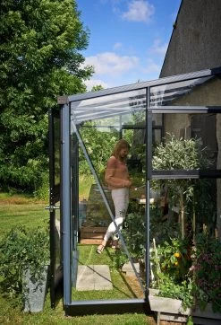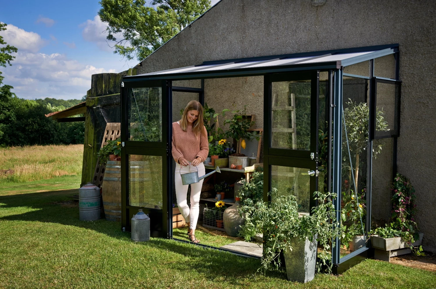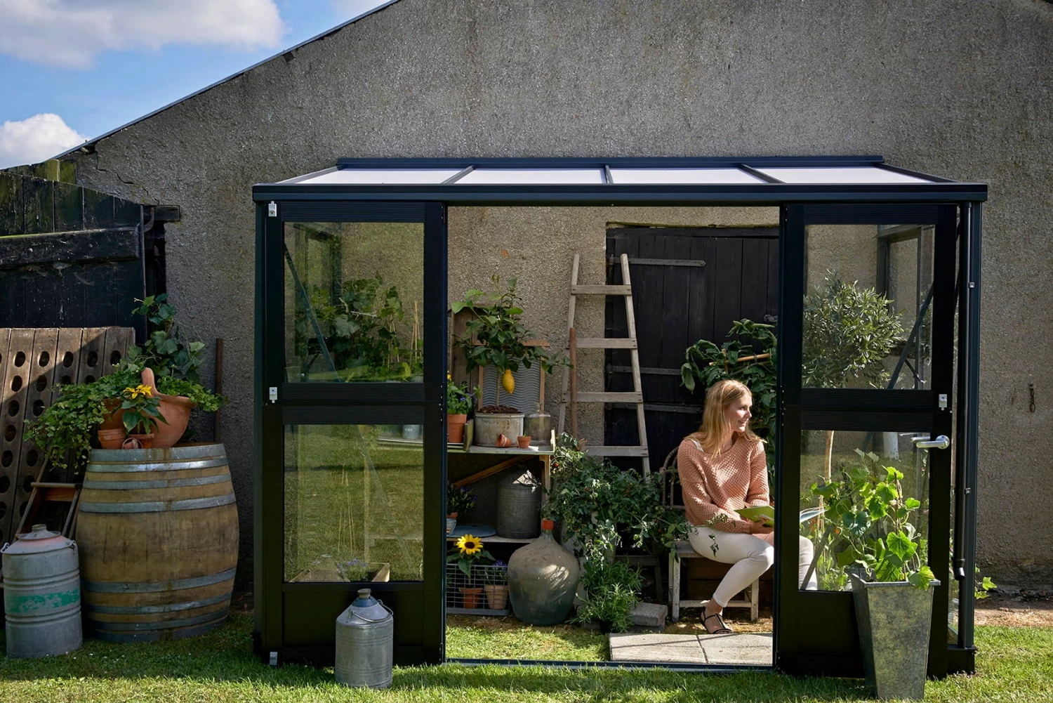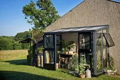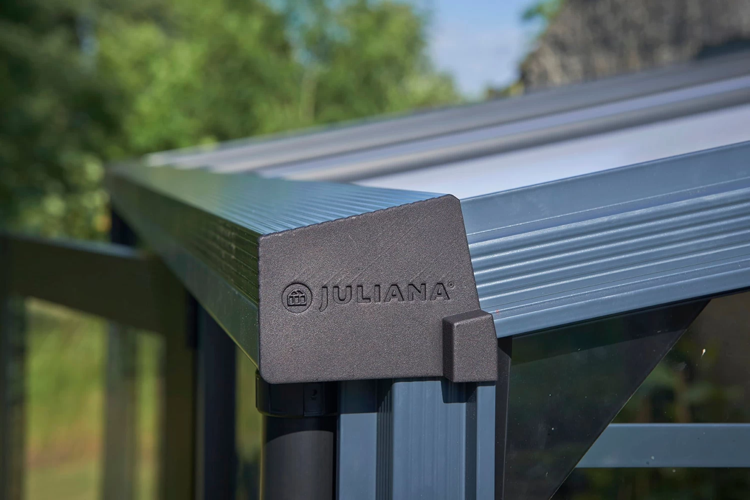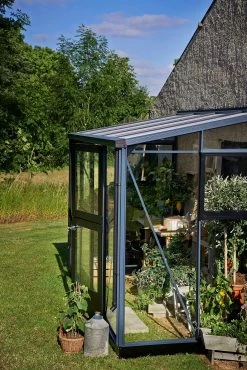 Juliana bietet für jeden Garten das passende Gewächshaus. Für kleinere Außenbereiche bietet sich das Modell „Veranda“ an, welches platzsparend an der Außenwand eines Gebäudes montiert wird. Die Maße sind kompakt und dennoch ergibt sich ein großzügiges Platzangebot für deine Pflanzen. Mit einem bequemen Möbelstück schaffst du zusätzlich Gemütlichkeit, sodass dein Gewächshaus mit Sicherheit zu deinem neuen Lieblingsort wird.
