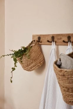 Der Jute-Korb mit Henkel ist die ideale Lösung für stilvolle Organisation und Ordnung in deinem Zuhause. Mit dem Henkel kannst du den Korb unkompliziert tragen und umplatzieren, aber auch einfach und dekorativ an einem Haken hängen. Ein echter Hingucker für Küche, Bad, Flur oder Wohnzimmer.