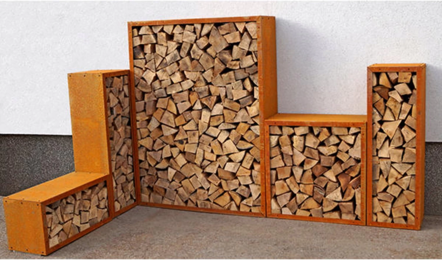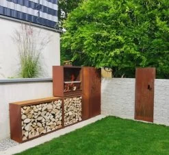 Dieses robuste Edelrost-Kaminholzregal ist perfekt fĂĽr den AuĂźenbereich, kann aber auch im Innenbereich verwendet werden. Es begeistert mit jeder Menge Platz fĂĽr Brennholz und sieht dabei auch noch ĂĽberaus dekorativ aus. Besonders toll: Du kannst mehrere Kaminholzregale wie in einem Baukastensystem miteinander kombinieren.