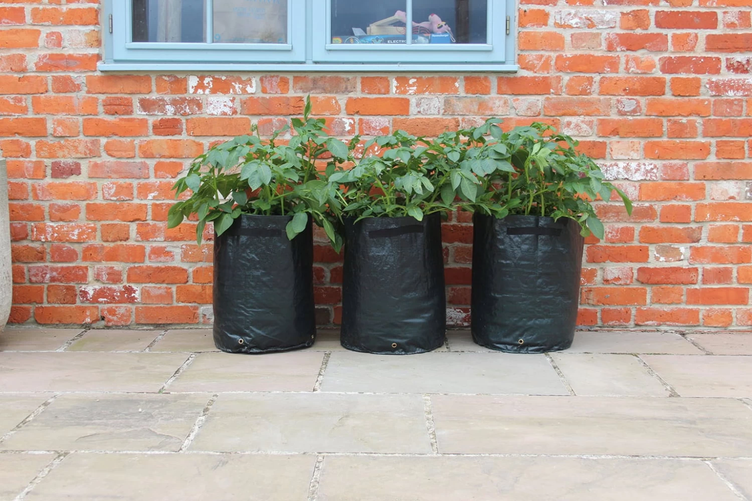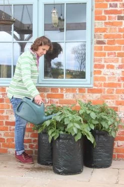 Ab sofort kann sich jeder köstliche, hausgemachte Kartoffeln wachsen lassen, auch wenn Sie keinen Garten besitzen. Die Kartoffelpflanztaschen sind speziell für den Einsatz auf Terrassen und Balkone konzipiert, fassen 40 Liter und eignen sich somit für 3 – 5 Pflanzkartoffeln. Das Material ist aus hartem, farbigen Polyethylen, besitzt verstärkte Ablauflöcher an der Basis und auf jeder Seite einen Griff.