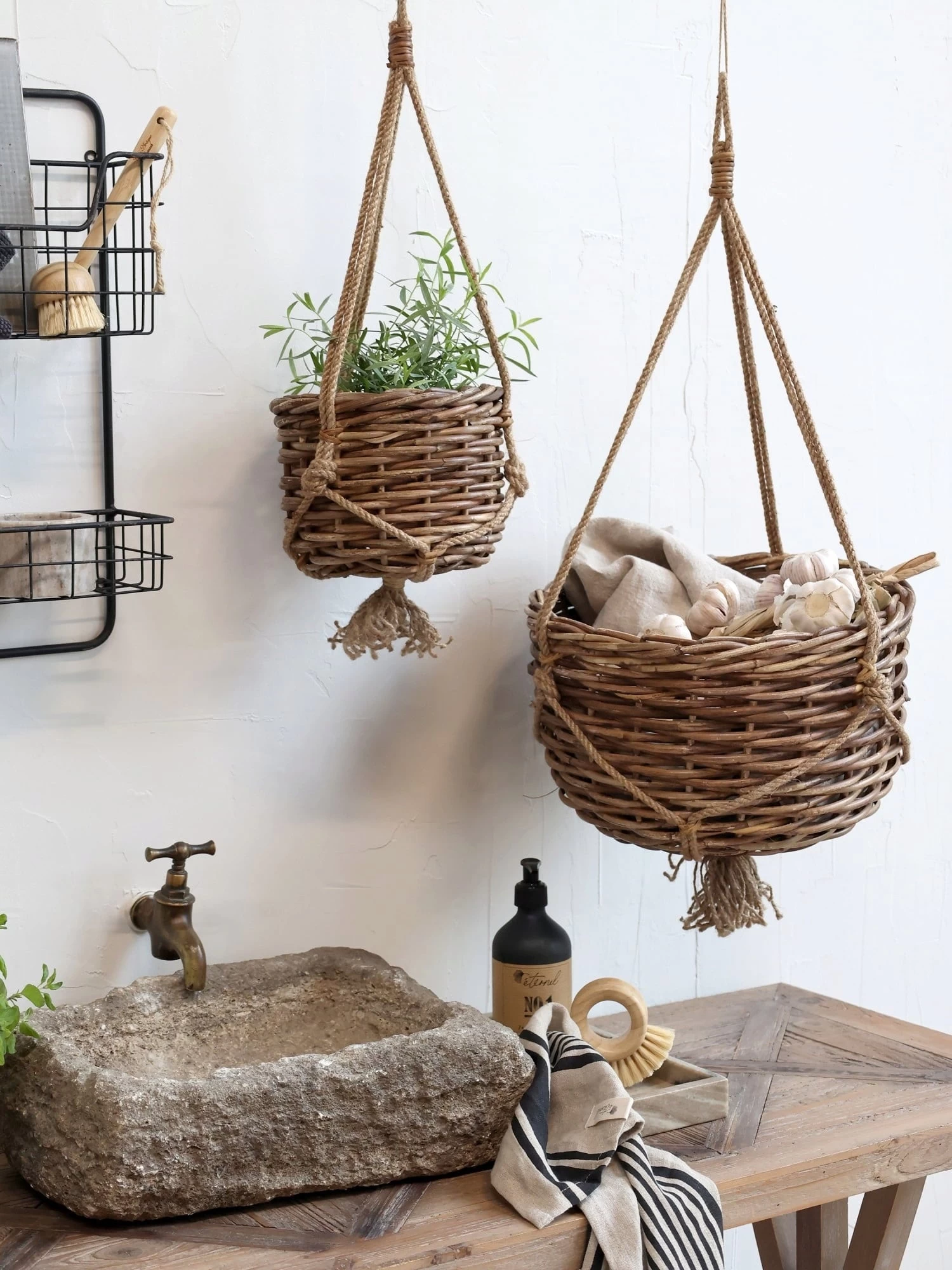 Diese Korb-Blumenampel besteht aus geflochtenem Rattan, welches deinem Zuhause eine natürliche und gemütliche Atmosphäre verleiht. Hänge sie einfach in dein Zuhause oder auf deinen Balkon und schaffe einen optimalen Platz für deine Pflanzen. Damit dein Boden trocken bleibt, ist die Blumenampel mit einer praktischen Innentasche aus PVC ausgestattet.