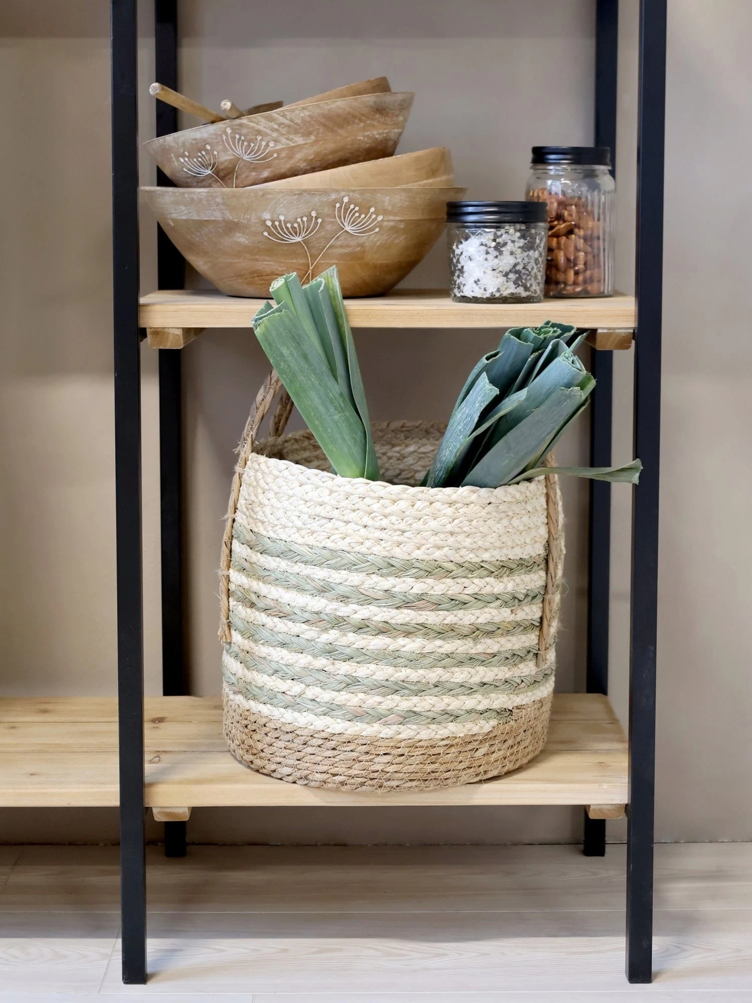 Die unterschiedlichen Größen und das zeitlose Streifendesign schaffen ein stimmiges Gesamtkonzept. Mit den Griffen lassen sich die Körbe zudem einfach transportieren. Falls sich also spontan Besuch anmeldet, einfach mit einem Korb von Raum zu Raum gehen und alles Herumliegende aufsammeln – in Rekordzeit zum aufgeräumten Zuhause.