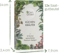 Mit diesem Set wird dein Traum eines eigenen Kräutergartens Wirklichkeit, denn die 12 ausgewählten Sorten bieten reichlich kulinarische Abwechslung und erfreuen auch die Sinne mit ihren berauschenden Aromen. Auf der Rückseite jeder Tüte findest du Tipps für die Aussaat, Ernte und vieles mehr. Je nach Sorte ist die Anzucht am Fensterbrett, im Topf oder Kräuterbeet möglich. Dank der schönen Umverpackung eignet sich das Küchen-Kräuter-Set auch wunderbar als Geschenk oder kleines Mitbringsel.