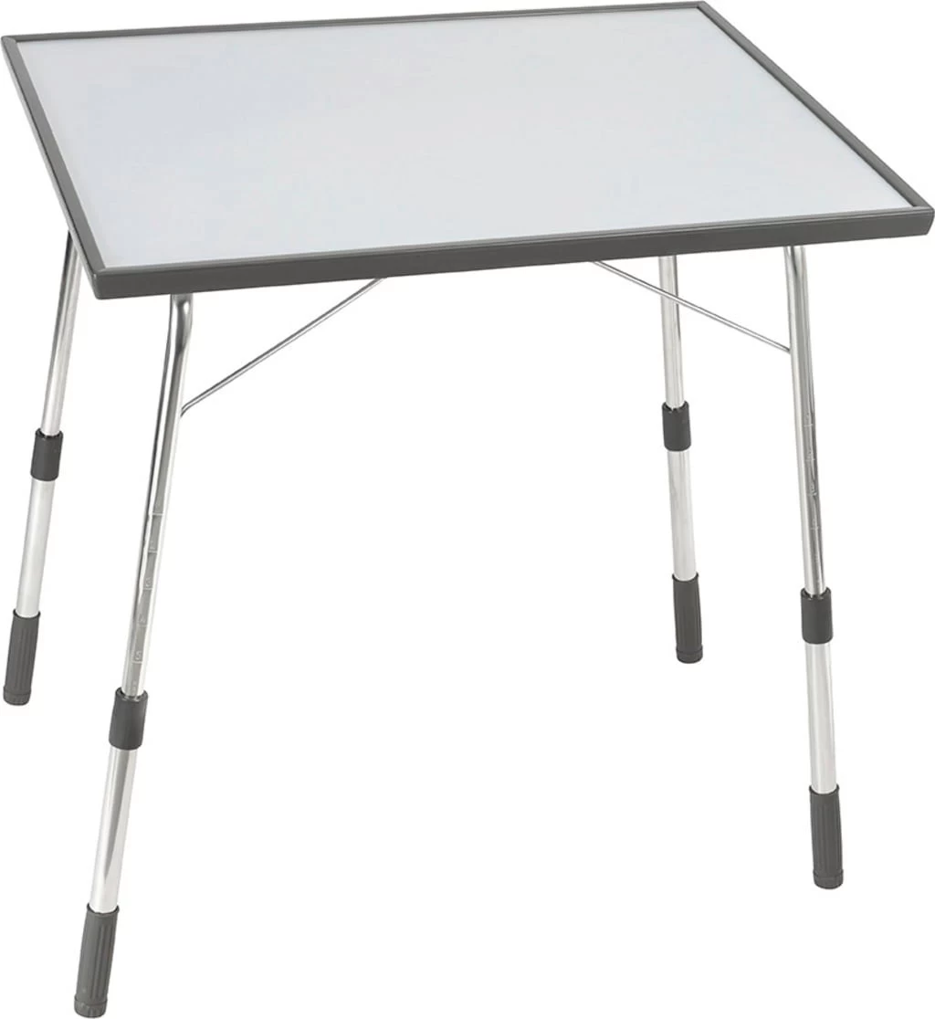 Der Tisch, an dem bis zu vier Personen Platz finden, punktet mit höchster WiderstandsfÀhigkeit: Die massive Tischplatte ist nicht nur UV-bestÀndig und wasserabweisend, sondern hÀlt auch hohen Temperaturen bis zu 140° C stand. Ein besonderes Highlight sind die vier individuell einstellbaren Tischbeine, die mit ihrer Teleskopvorrichtung garantieren, dass der Tisch auch auf unebenem GelÀnde optimal positioniert ist.