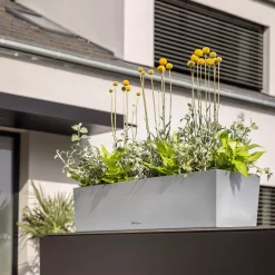 Der von industriellem Flair inspirierte Edelstahl-Balkonkasten „Balconera Steel“ bietet viel Platz für eine farbenfrohe Blütenpracht. Sein ausgeklügeltes „All-in-One“-System mit entnehmbaren Pflanzkästen und Bewässerungssystem macht den Pflanzkasten zum absoluten Liebling der Balkonsaison. Egal ob freistehend platziert oder mit der separat erhältlichen Halterung am Balkongeländer befestigt – ein stilvoller Blickfang ist der jederzeit und überall.