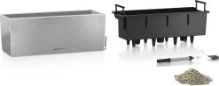 Material: Rostfreier Edelstahll, perlgestrahlt, Pflanzeinsätze aus recyceltem Kunststoff