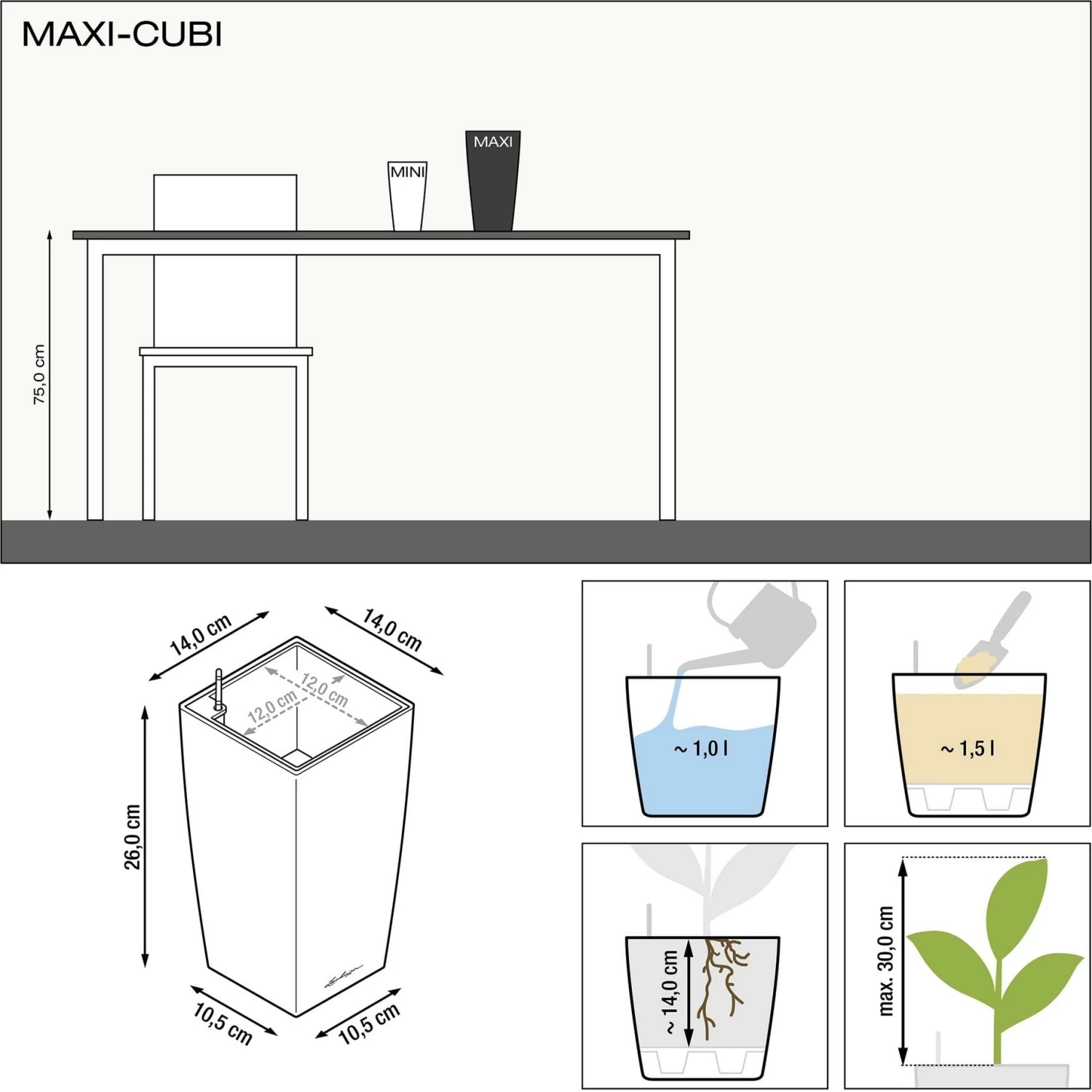 Zurückhaltend in Form und Design, begeistern die Maxi-Cubi Tischgefäße mit elegantem Metallic-Look und cleverem Innenleben. Der herausnehmbare Pflanzeinsatz mit Docht-Bewässerungssystem sorgt für einfaches Handling und große Blütenpracht dank optimaler Wasserversorgung. Die perfekte Wahl für stilvolle Akzente in allen Wohnräumen.