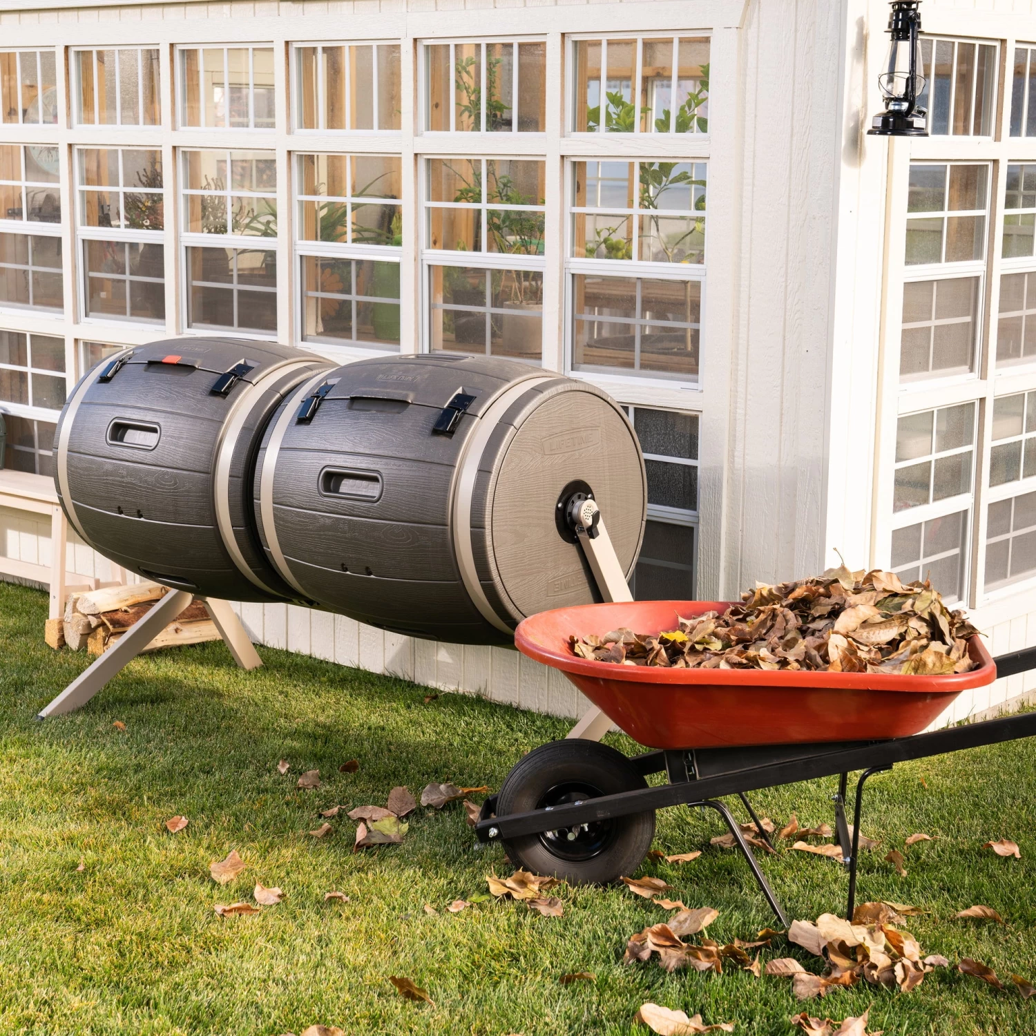 Dieser Doppelkomposter bietet mit zwei Fässern mit jeweils 190 l Fassungsvermögen jede Menge Platz für deine biologischen Küchen- und Gartenabfälle uns wandelt diese dank seiner innovativen Konstruktion schnell, sauber und geruchsneutral in wertvollen Kompost um.