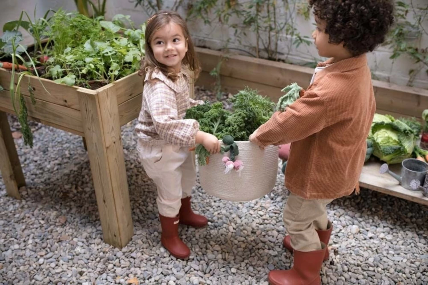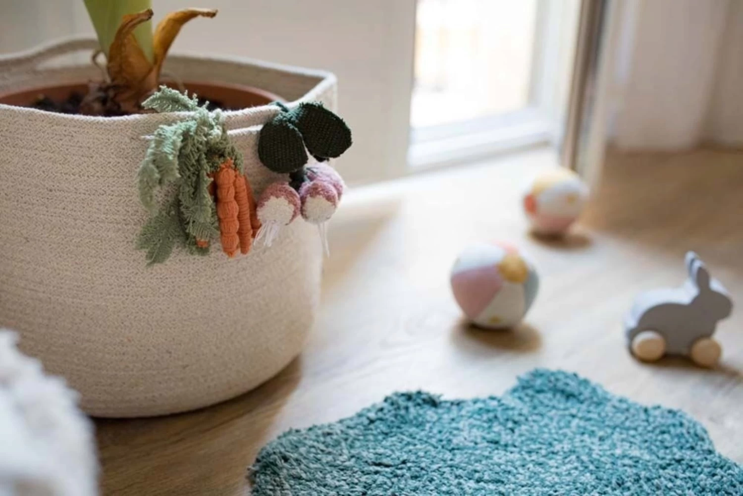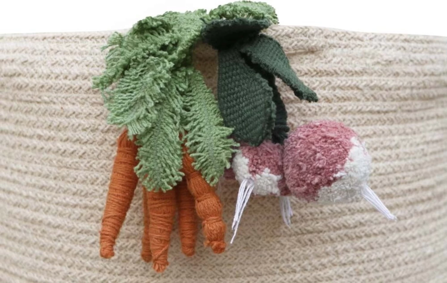 Allein die geflochtenen Baumwollschnüre, die raffiniert per Hand zu diesem robusten Produkt verwoben wurden, sind eine unnachahmliche Augenweide. Zwei gegenüberliegende Griffe ermöglichen eine mühelose Handhabung. Der Korb an sich ist bereits wunderschön, aber mit der liebevollen Gemüsedeko kommt hier noch das gewisse Extra. Von Hand gefertigt und natürlich. Nur so entsteht diese einzigartige Optik, in die man sich verliebt.