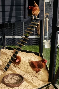 Eigene Hühner zu halten, erfreut sich immer mehr wachsender Beliebtheit. In diesem modernen Hühnerparadies kann sich das liebe Federvieh wohlfühlen, während Du dich täglich über frische Bio-Eier freuen kannst. Sein attraktives Design in schwarz grundiertem Nadelholz in Kombination mit der durchdachten Konstruktion macht einfach Lust, selbst Hühner zu halten. Ein tolles Komplett-Set, damit Du sofort starten kannst. Der Aufbau gelingt dank bereits vormontierter Teile und detaillierter Aufbauanleitung einfach und unkompliziert.