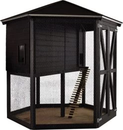 - Mit Doppeltür, Treppe und Legekasten mit Sitzstangen