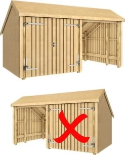 Hinweis: Der geschlossene Schuppen kann nur auf der linken Seite platziert werden.