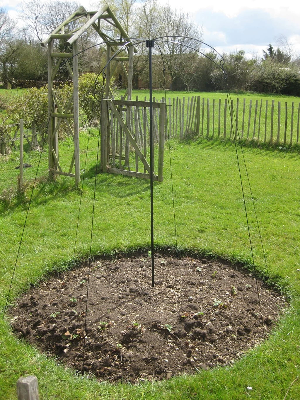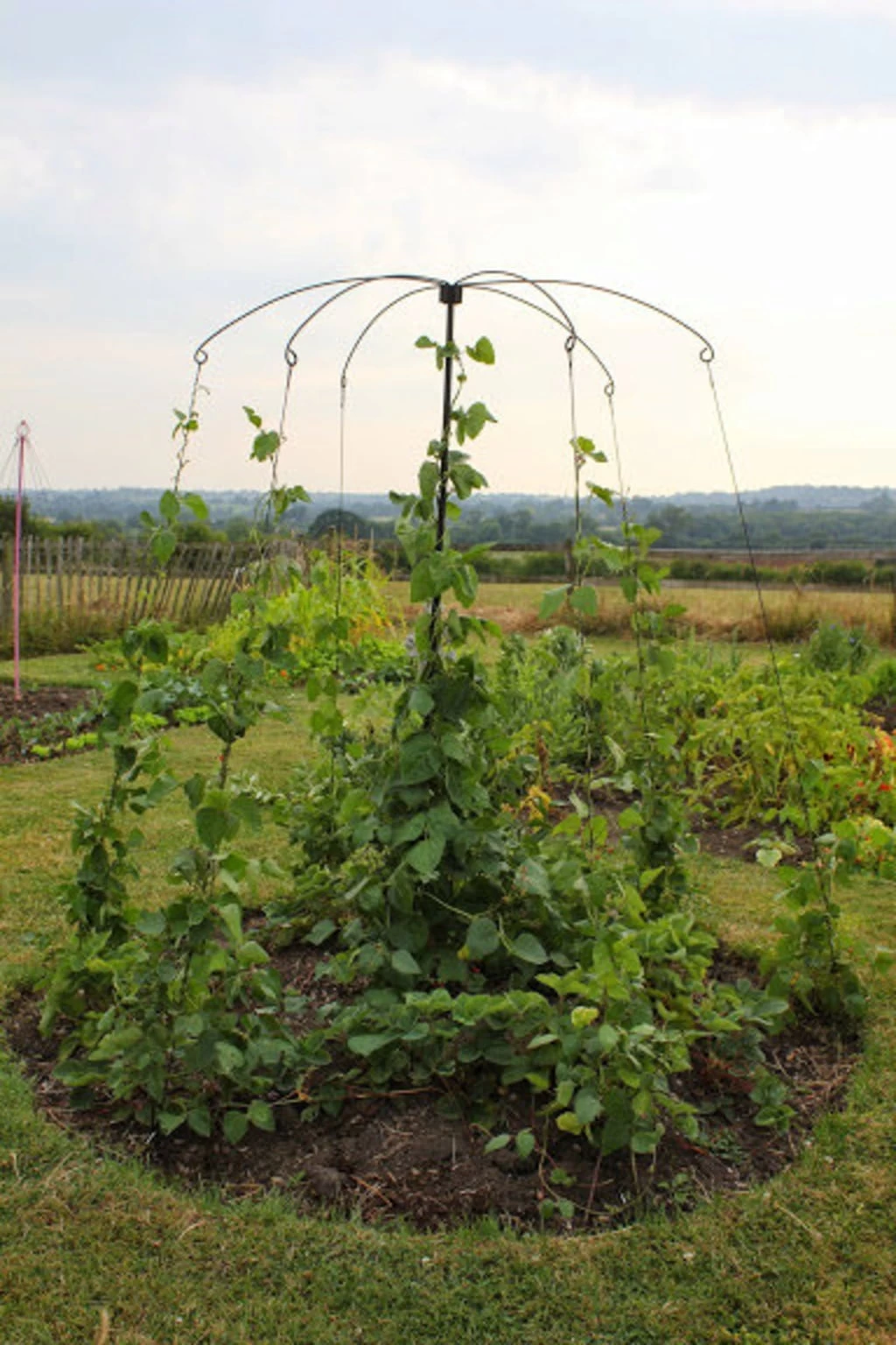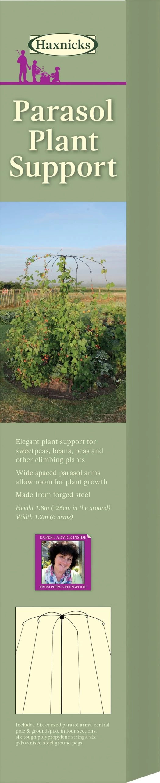 Diese Rankhilfe breitet sich aus wie ein Sonnenschirm und ist eine elegante Hilfe für Ihre rankenden Pflanzen (Erbsen, Bohnen und andere Kletterpflanzen). Die Arme des „Sonnenschirms“ sind so konzipiert, dass sie genug Platz für die Ranker schaffen. Der Lieferumfang umfasst 6 gebogene Arme, 1 Mittelstange einen Erdspieß und 6 verzinkte Stahlheringe.