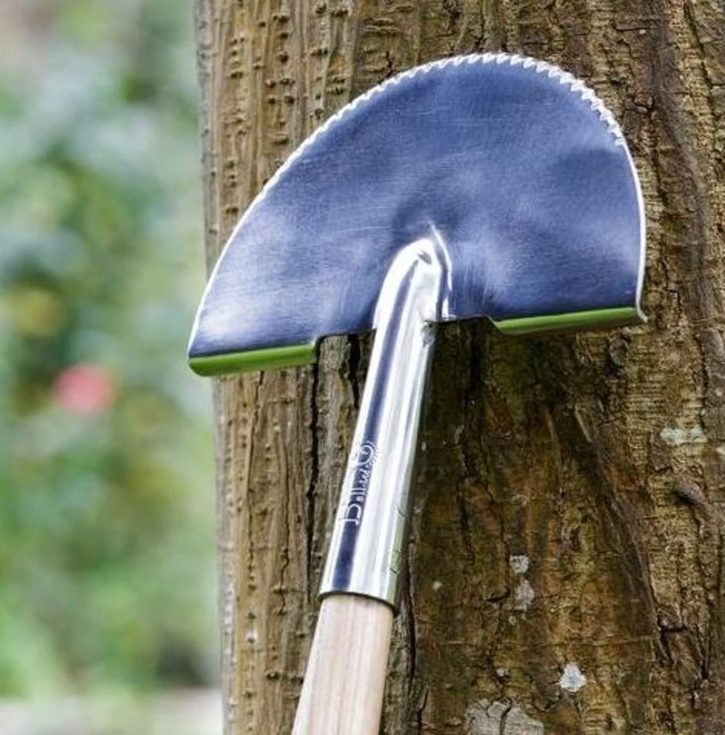 Die scharfe, verzahnte Edelstahl-Klinge des Kopfes schneidet mühelos durch das Erdreich und ermöglicht so das Ziehen exakter Kanten. Dank der breiten Trittflächen kannst du kräftig und sicher zutreten.