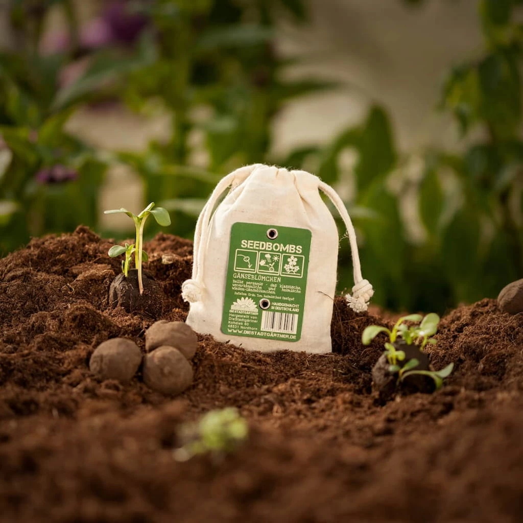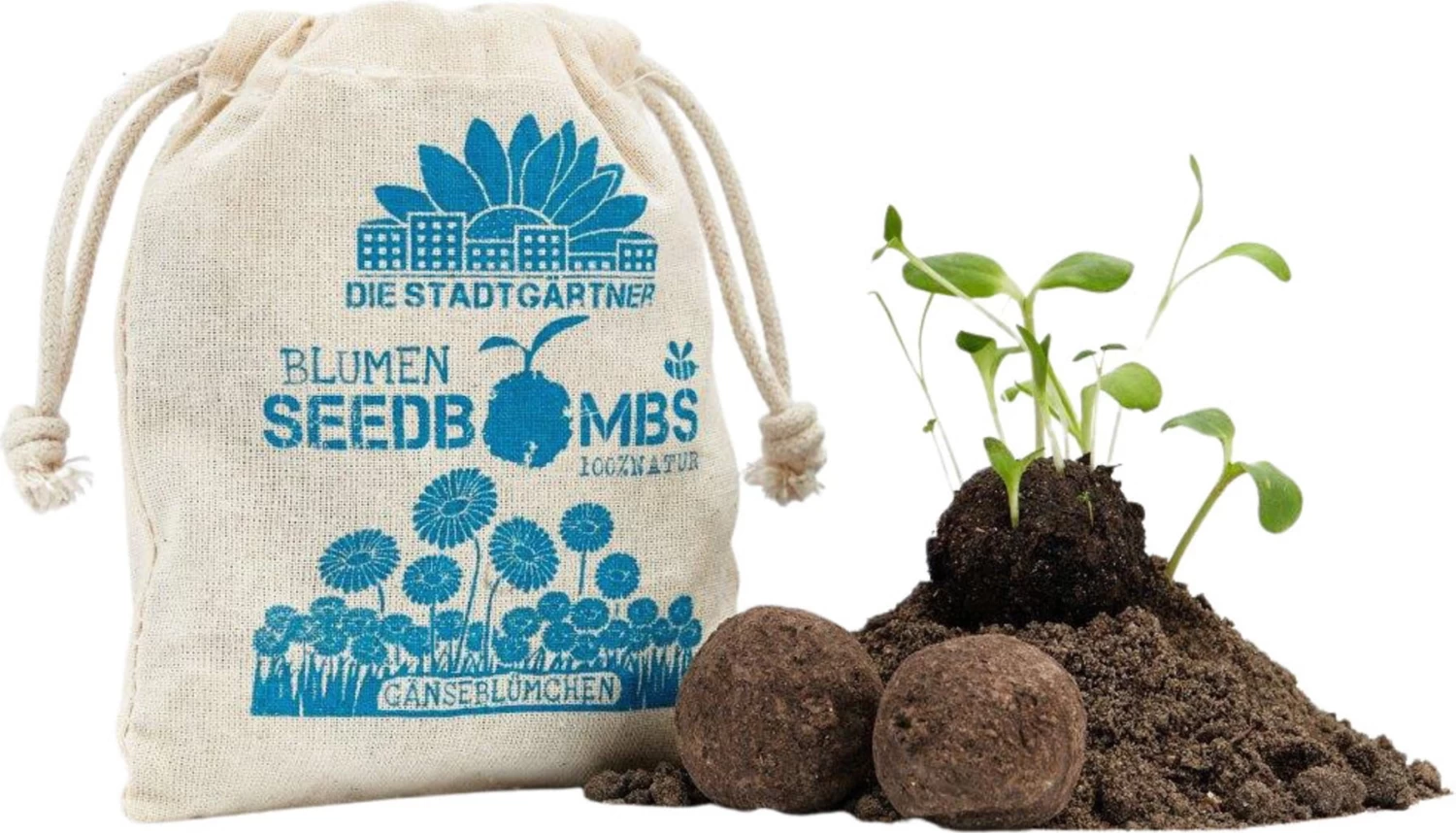 Die Samenbomben müssen nicht eingepflanzt werden, sondern können direkt oder per Wurf an der gewünschten Stelle ausgebracht werden. Der Mix aus Ton und Humus verhindert, dass die Samen austrocknen oder durch Regen weggeschwemmt werden.