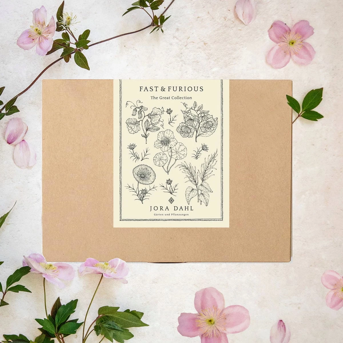 Eine fein aufeinander abgestimmte Kollektion von Jora Dahl, die mit ihrem schnellen Wuchs und ihrem ĂŒppigen BlĂŒtenflor fĂŒr EntzĂŒckung sorgt. Auch fĂŒr neue GĂ€rten, die schnell etwas hermachen sollen, ist der Blumen-Mix eine hervorragende Wahl. Die Anzucht ist kinderleicht und garantiert stĂ€ndig frische Schnittblumen aus dem eigenen Garten, die sich lange in der Vase halten. In der edlen Geschenkbox befinden sich insgesamt acht Sorten, mit denen wundervolle Bouquets kreiert werden können.