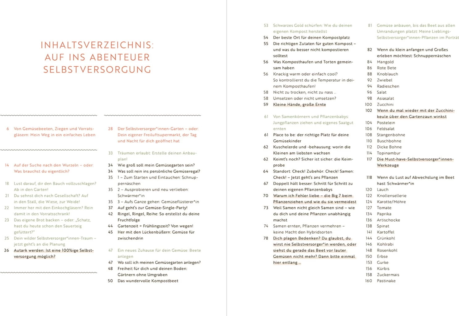 Die Autorin dieses Buches Marie Diederich lässt dich in diesem Buch an ihren Erfahrungen als Selbstversorgerin teilhaben und zeigt dir anhand praxisnaher Schritt-für-Schritt-Anleitungen, wie auch du dein eigenes Gemüse züchten, Brot backen, Hühner sowie andere Tiere halten und deine Ernte haltbar machen kannst. Dabei lernst du ihre eigene, selbst entwickelte Gärtnermethode ebenso kennen wie verschiedene andere Herangehensweisen an das Thema Selbstversorgung.